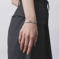 ブランドが誇る独自のカッティングを施したバングルとプレーンな形状で作られたバングルは太さにも変化をつけて表情にアクセントを加えています。