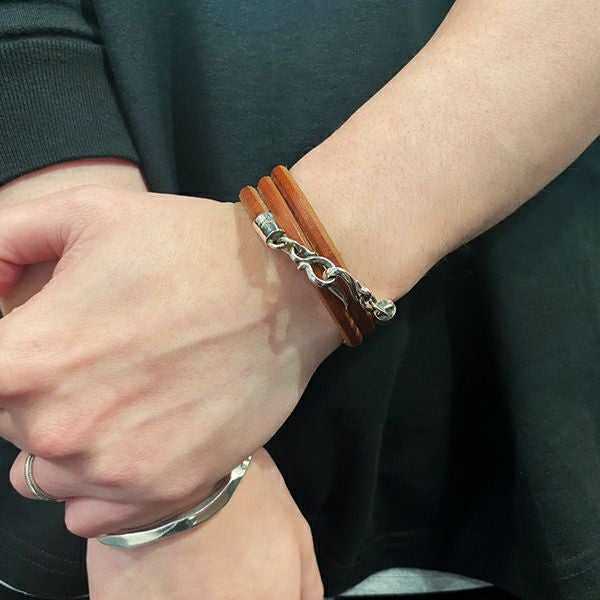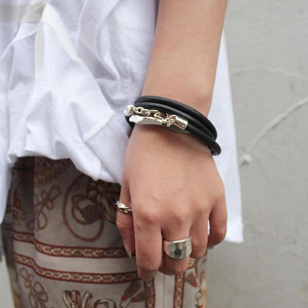 1997年のブランド設立当時からリリースし続けている三連レザーブレスレットです。 オリジナルシルバー製パーツを使用しています。 サイズ展開が豊富なので男女問わずご着用いただけます。 オリジナルアクセサリーケース付き。 ギフトラッピング用の有料ギフトボックスはこちら >ACCESSORY BOX