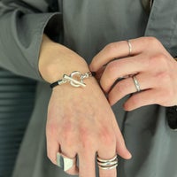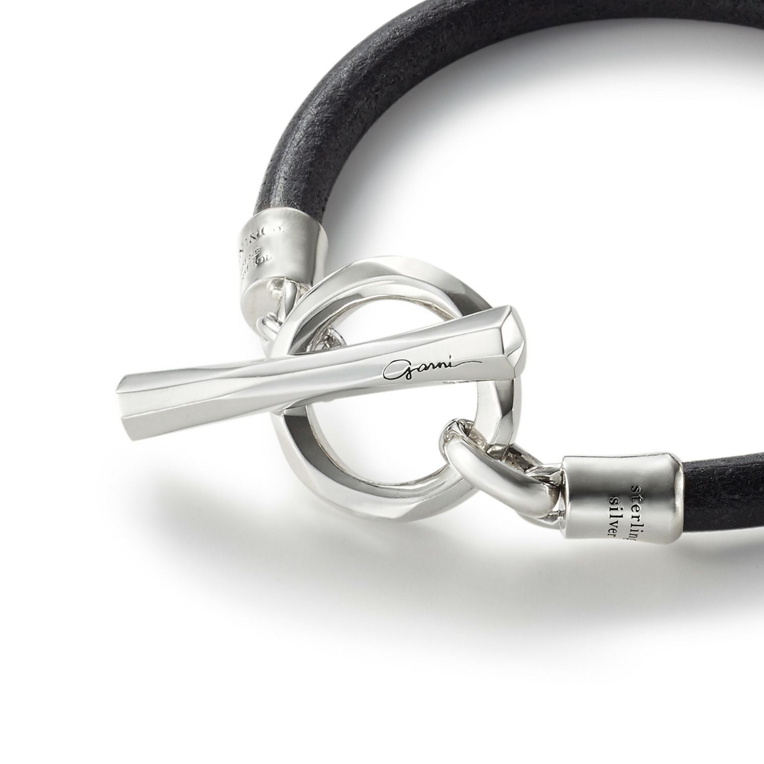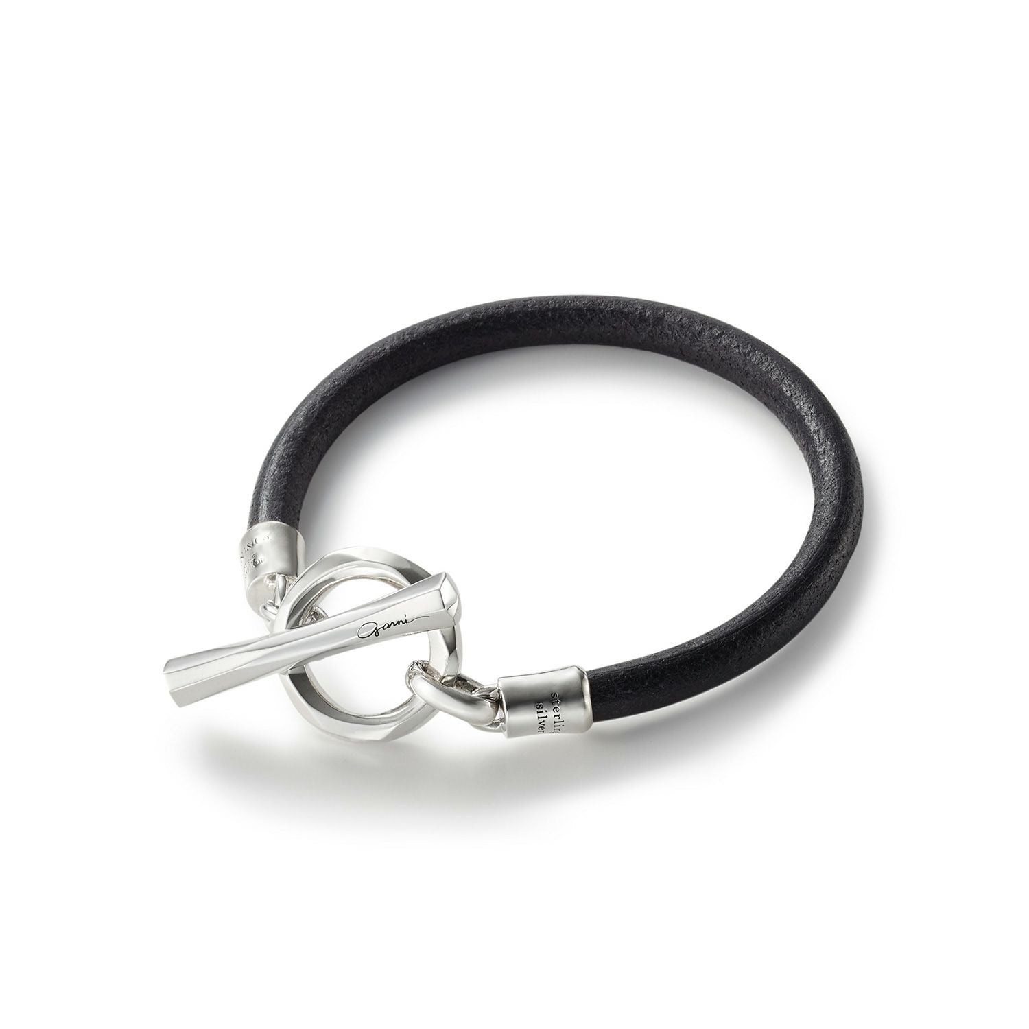 レザーコードを使用したブレスレットです。 ガルニのシグネチャー商品「クロッケリー」に代表されるエッジーなカッティングを施したマンテル(留め具)パーツが際立つデザインです。 上品な雰囲気ながらもカジュアルに使えるレザーブレスレットに仕上がっ ています。 トグルバー(Tバー)タイプなので着脱が楽に行えます。 L、Mとサイズ展開があるので男女問わずご着用いただけます。 オリジナルアクセサリーケース付き。 ギフトラッピング用の有料ギフトボックスはこちら >ACCESSORY BOX