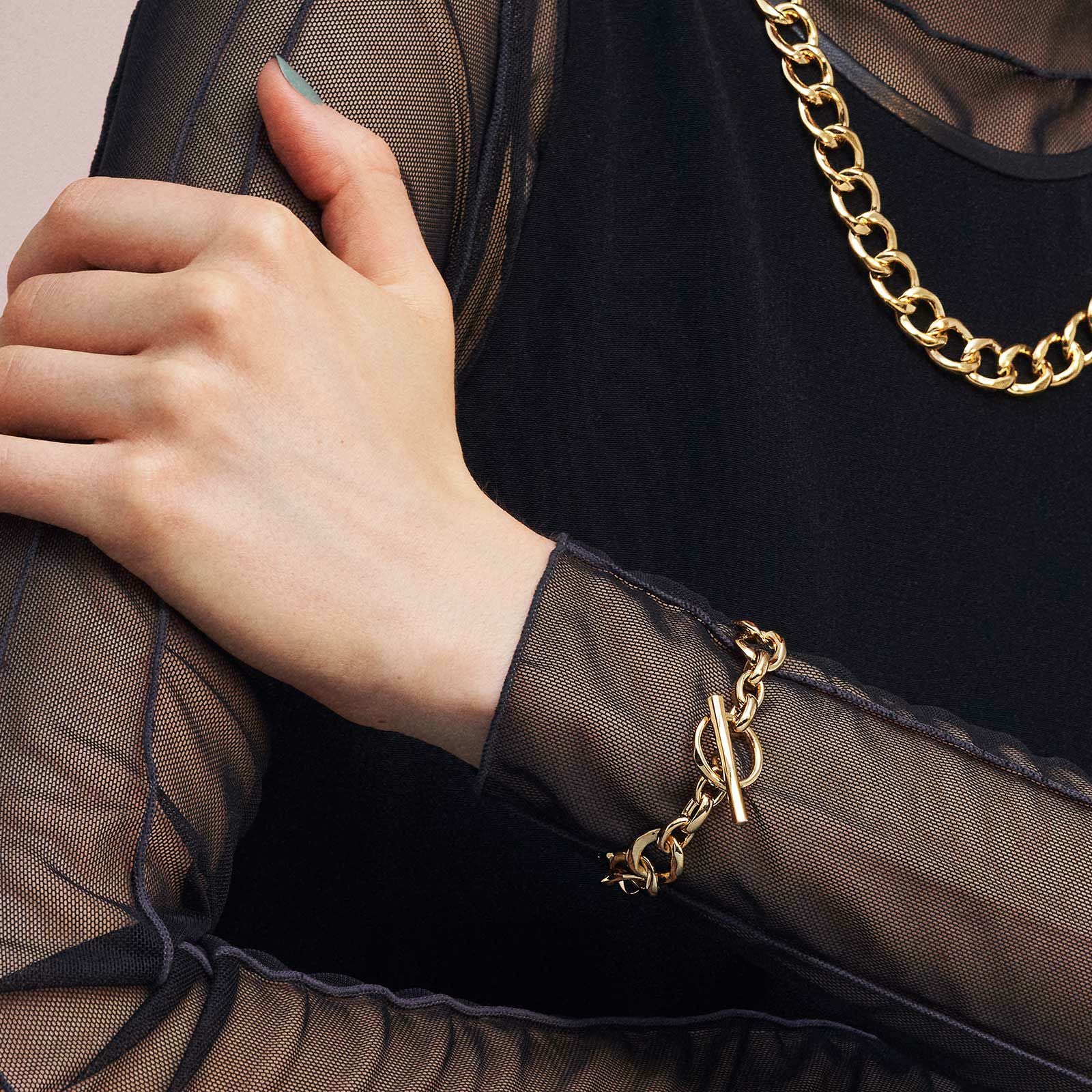 表面にさりげなくテクスチャーを施した「セイマ」のブレスレッ トです。全体的に厚みを抑えていますが、存在感のある喜平チェーンです。