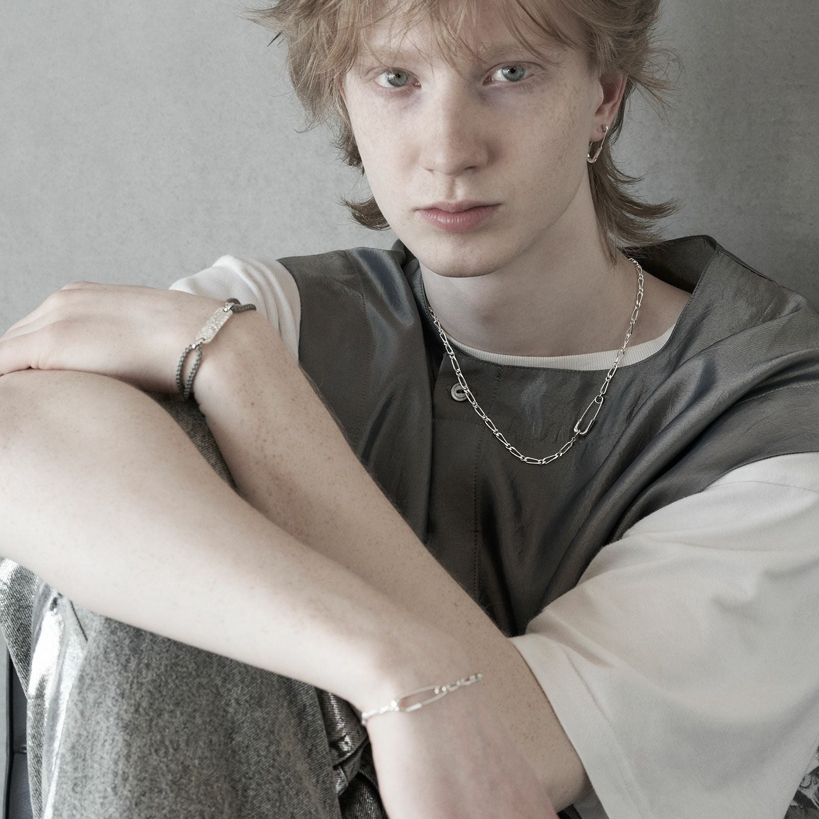 安全ピンをモチーフにしたブレスレットです。 Long、Shortの2サイズ展開です。 オリジナルアクセサリーケース付き。
