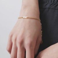 3種類のチェーンをミックスして組み上げたブレスレットです。 他のブレスレットやカラー違いでの重ね着けもオススメです。長さはフックをチェーンのコマに引っ掛けてサイズ調整可能です。 オリジナルアクセサリーケース付き。 GOLDはK18 Gold Plated (ゴールドコーティング)を施しています。 ギフトラッピング用の有料ギフトボックスはこちら >ACCESSORY BOX 《注意事項》 ・汚れなどついた場合は柔らかい布等で優しく拭き取って下さい。 ・シルバー洗浄液・研磨剤を含んだ布(シルバーポリッシュ等)はご使用にならないで下さい。コーティングが剥がれる原因になりますのでご注意下さい。