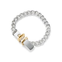 バックルとループパーツにはK18 イエローゴールドを使用。シルバーとゴールドのコンビネーションが高級感を引き立てます。