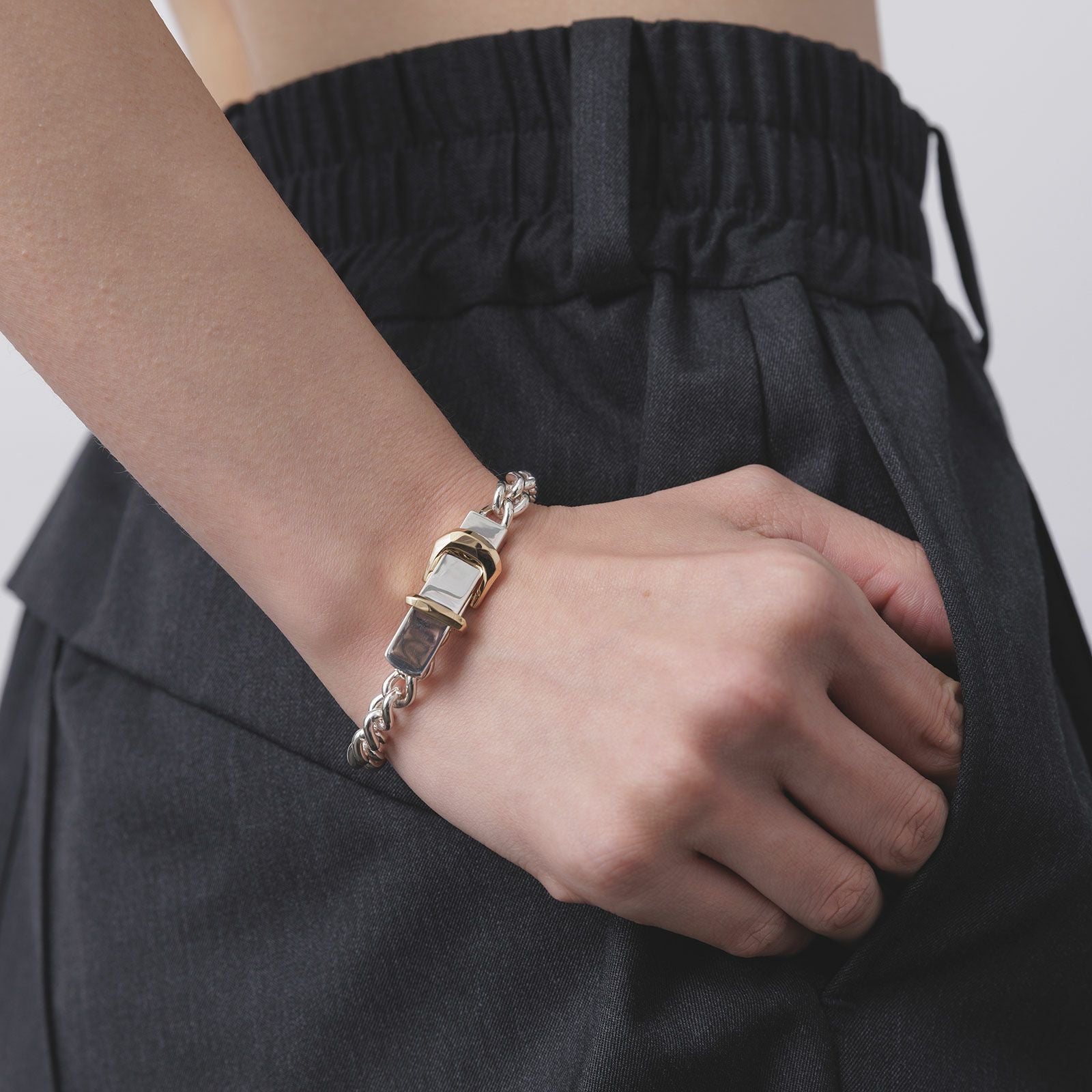 ウエスタンベルトから着想したWave Belt - No.2をベースにデザインされたチェーンブレスレットです。