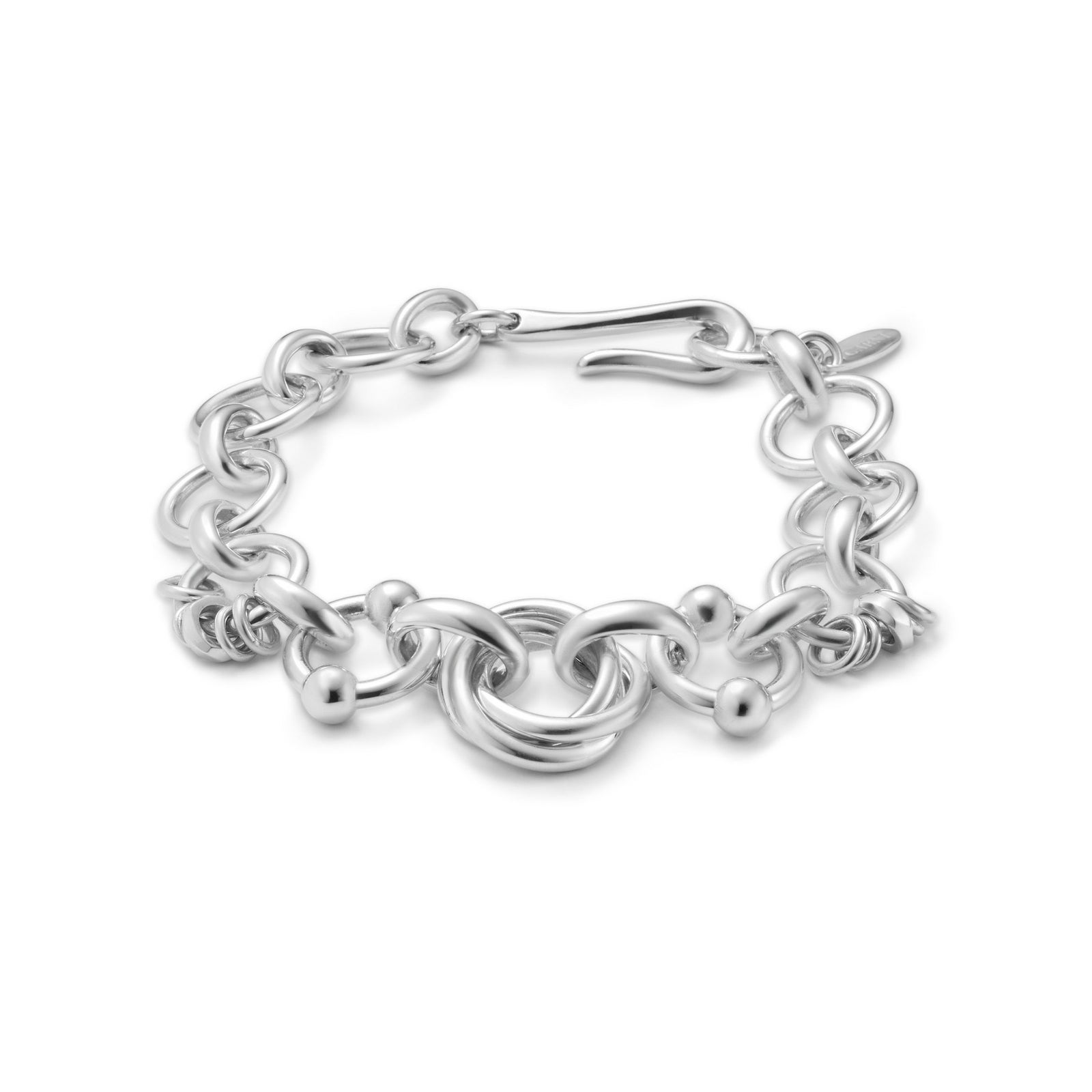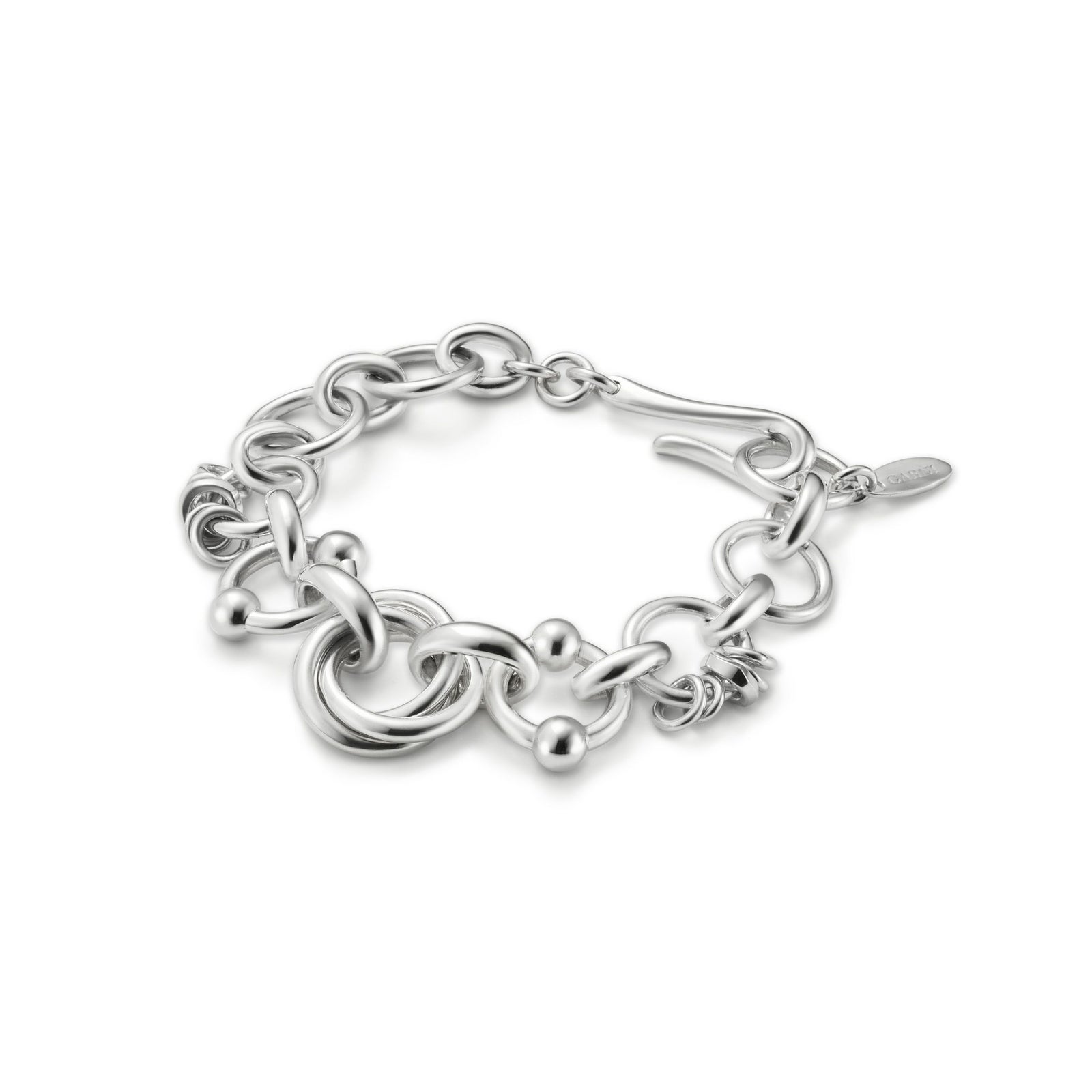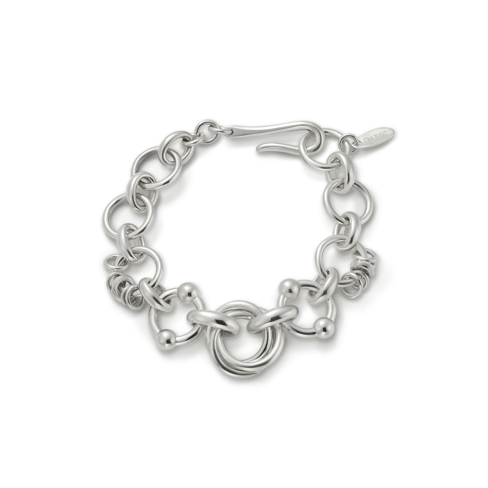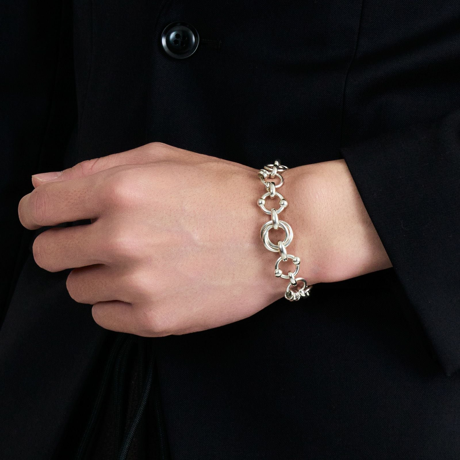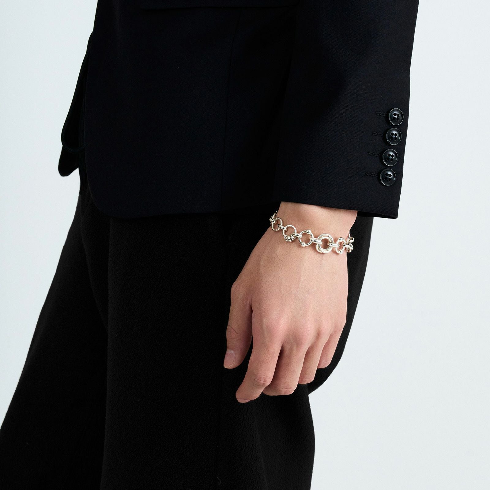 装飾を施したパーツなどを連ねたオリジナルチェーンが印象的なブレスレットです。