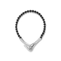 深みのあるブラックオニキスビーズの間に金属パーツを加えることで上品な雰囲気に仕上げています。