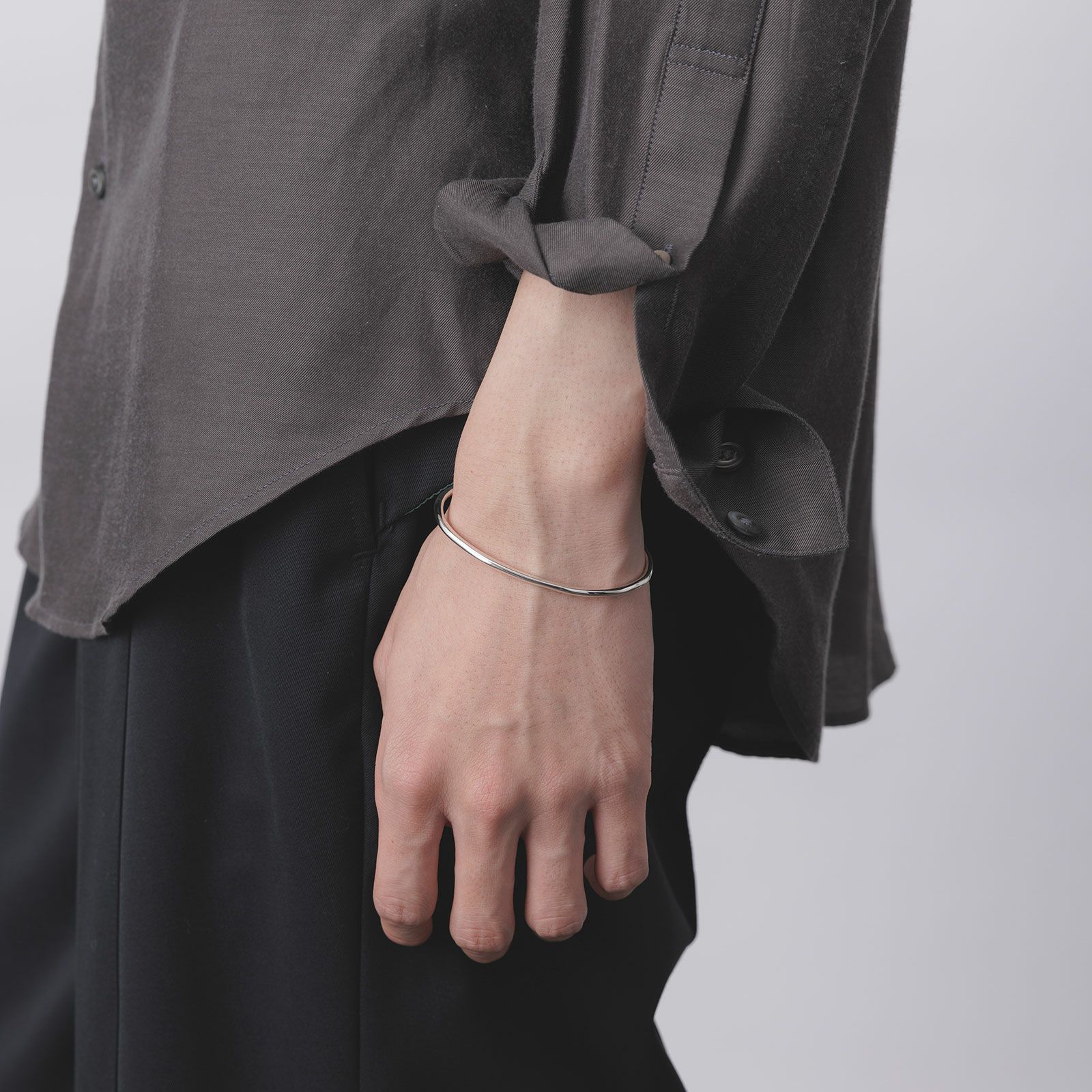 シンプルながら、なめらかで美しい曲線を描いた「グレース」のバングルです。