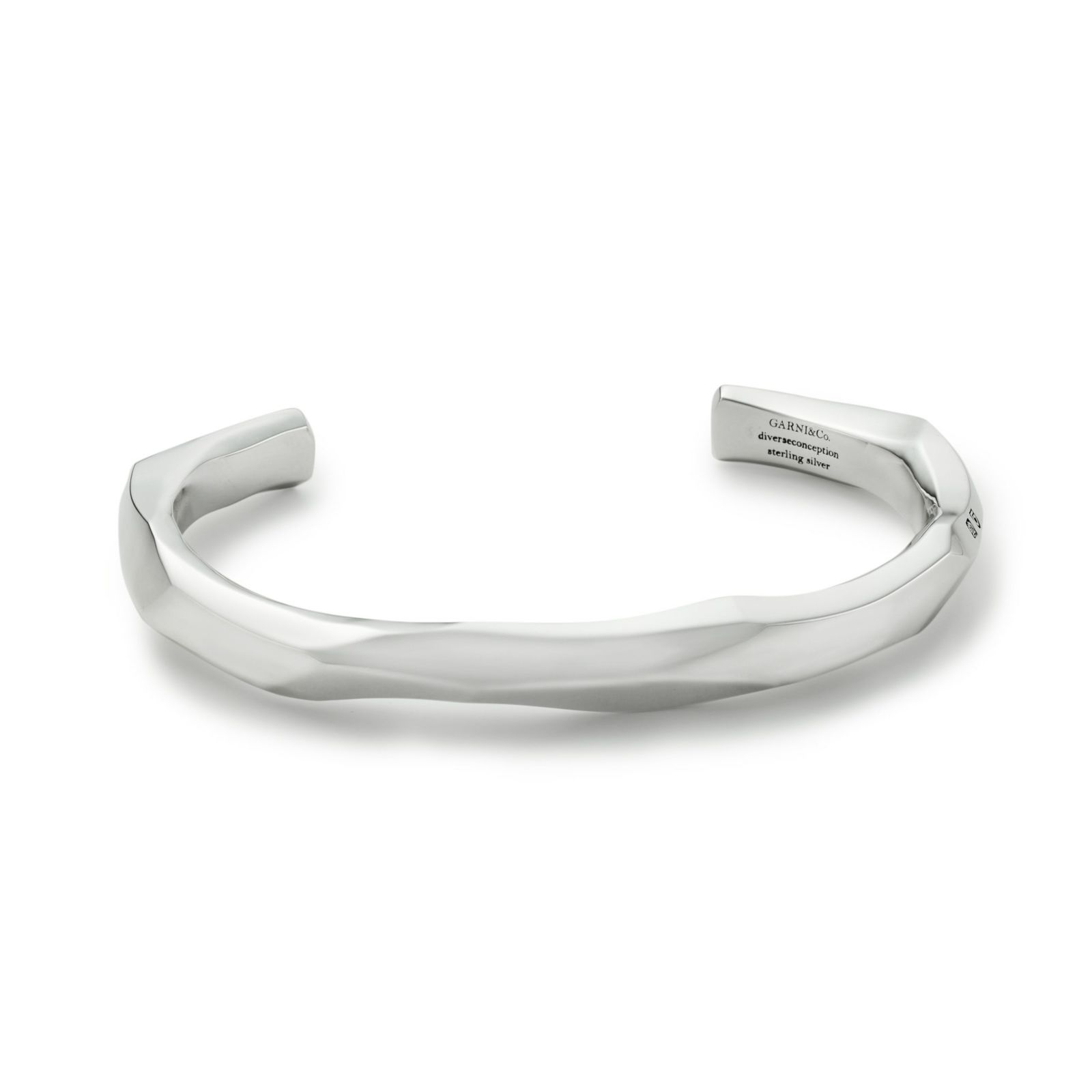 デザイナーが削り出し表現した繊細な曲線、絶妙なエッジが特徴です。秘めた輝きを放ちつつ、一線を画す上品さを兼ね備えている独自のカッティングです。シルバーアクセサリーの真骨頂とも言えるバングルはシルバー素材の美しさを存分に生かし、デザインは独自性を放ち形作られています。