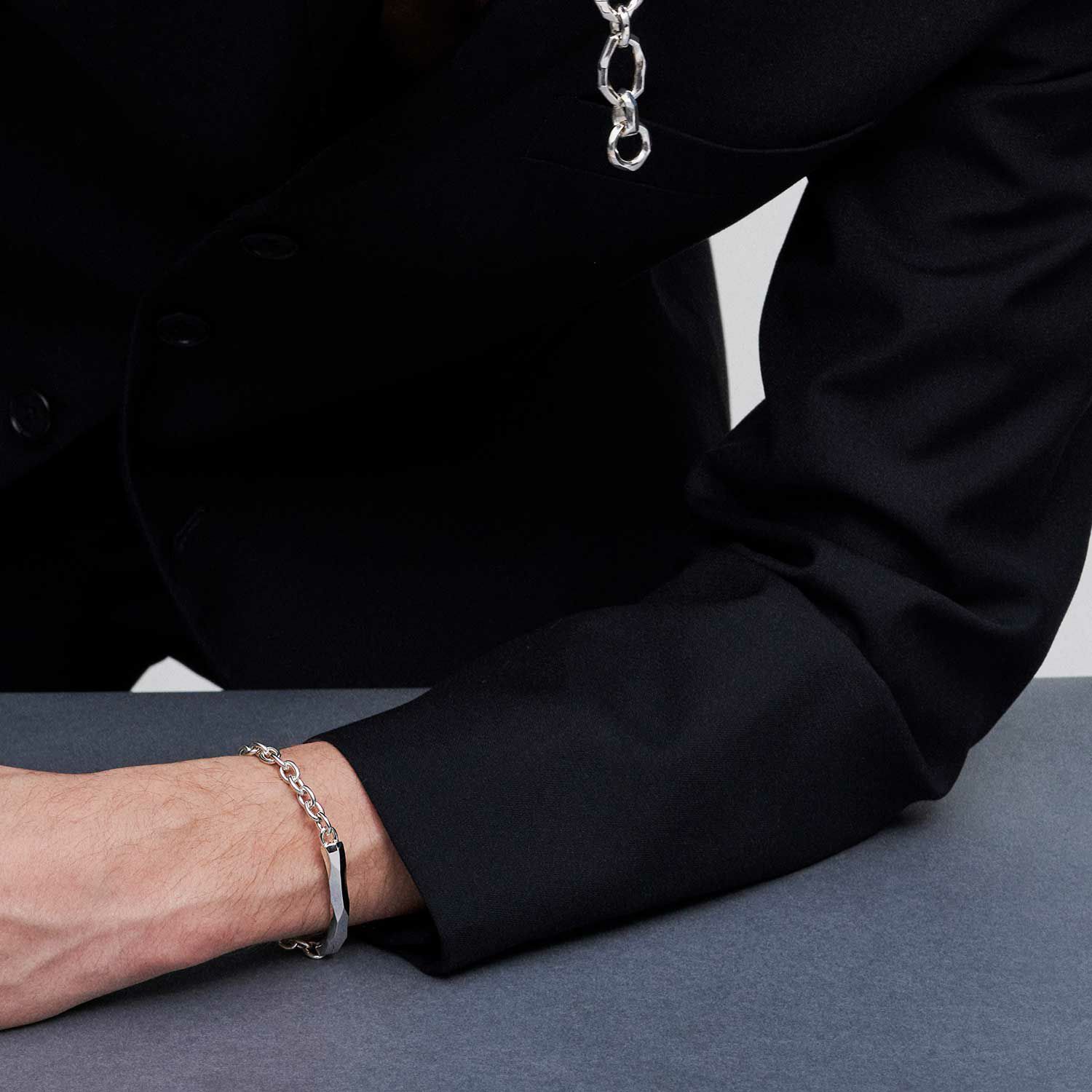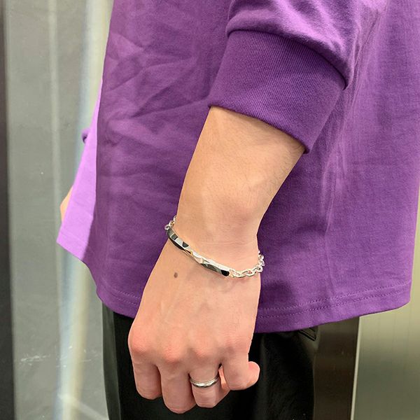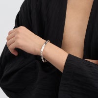 バー部分は側面を削りとり、表面にはテクスチャーを施したシルバーの特徴がいかされたブレスレットです。