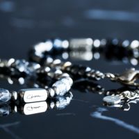 ■デザイン ステンレスのラウンドビーズと シルバー925製ビーズを組み合わせて、同じシルバー色でもコントラストをつけ、アクセントにガラスビーズを加えています。