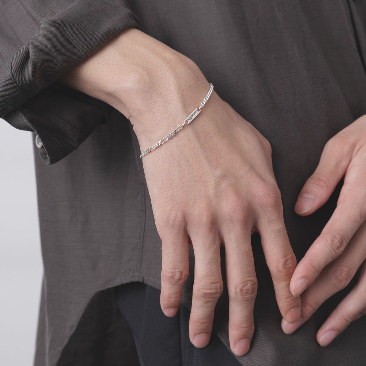 3種類のチェーンをミックスして組み上げたブレスレットです。 他のブレスレットやカラー違いでの重ね着けもオススメです。長さはフックをチェーンのコマに引っ掛けてサイズ調整可能です。 オリジナルアクセサリーケース付き。 GOLDはK18 Gold Plated (ゴールドコーティング)を施しています。 ギフトラッピング用の有料ギフトボックスはこちら >ACCESSORY BOX 《注意事項》 ・汚れなどついた場合は柔らかい布等で優しく拭き取って下さい。 ・シルバー洗浄液・研磨剤を含んだ布(シルバーポリッシュ等)はご使用にならないで下さい。コーティングが剥がれる原因になりますのでご注意下さい。