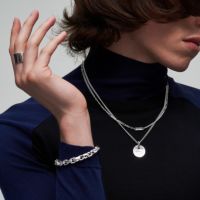 独創的なフォルムの"Clash"デザインとクラフト感のあるプレーンなデザインを組み合わせた、ジェンダーレスに着用できる"クラッシュコンビ"。 こちらは手で削り出したペンダントトップが豊かなニュアンスを醸しだしているコインモチーフのペンダントです。 トップとチェーンを繋ぐバチカン部分に施した"Clash"デザインがアクセントになっています。 アジャスターでチェーンの長さを7cm調整可能です。チェーンはペンダントトップから外れない仕様になっています。 オリジナルアクセサリーケース付き。 【CLASH】COLLECTION >商品一覧はこちら