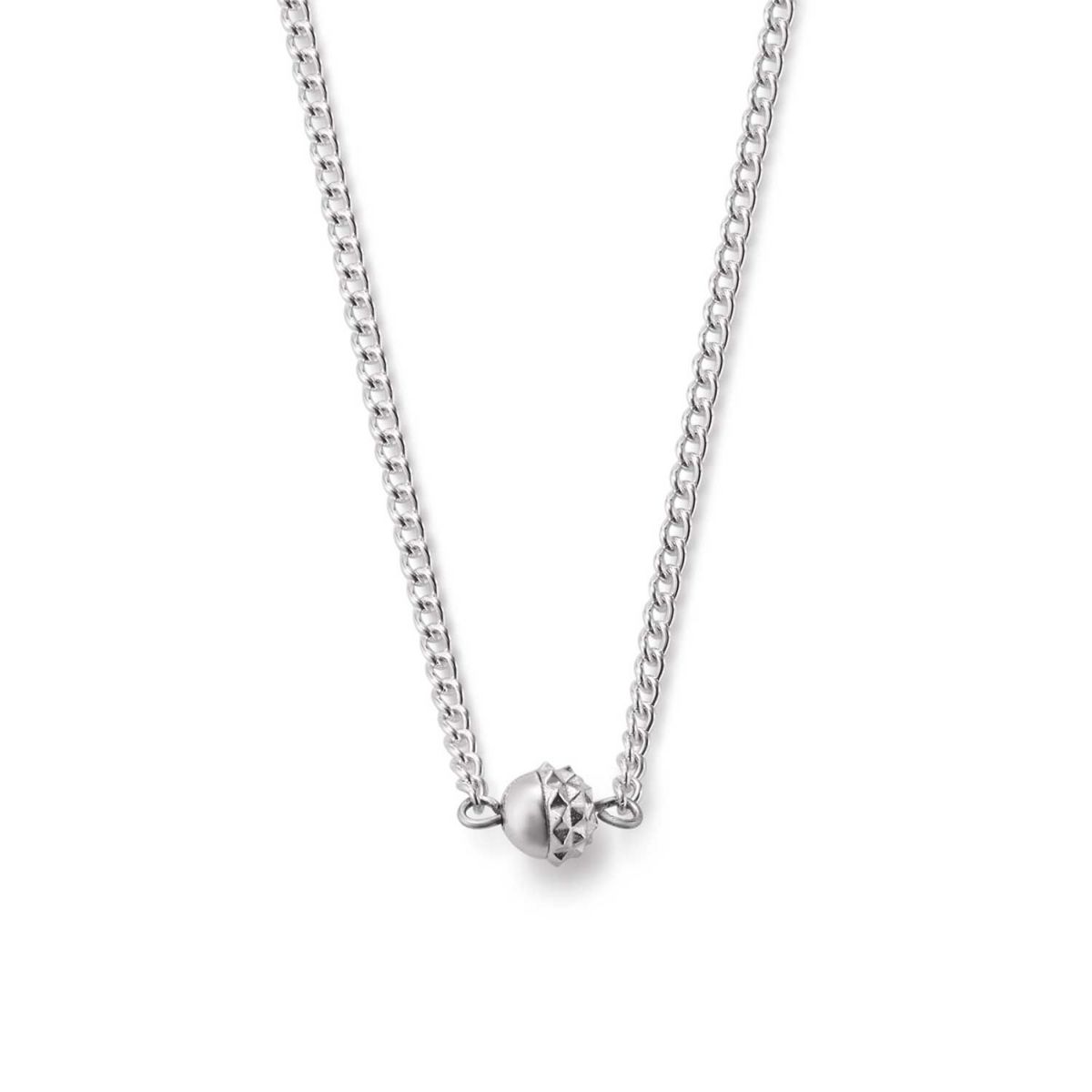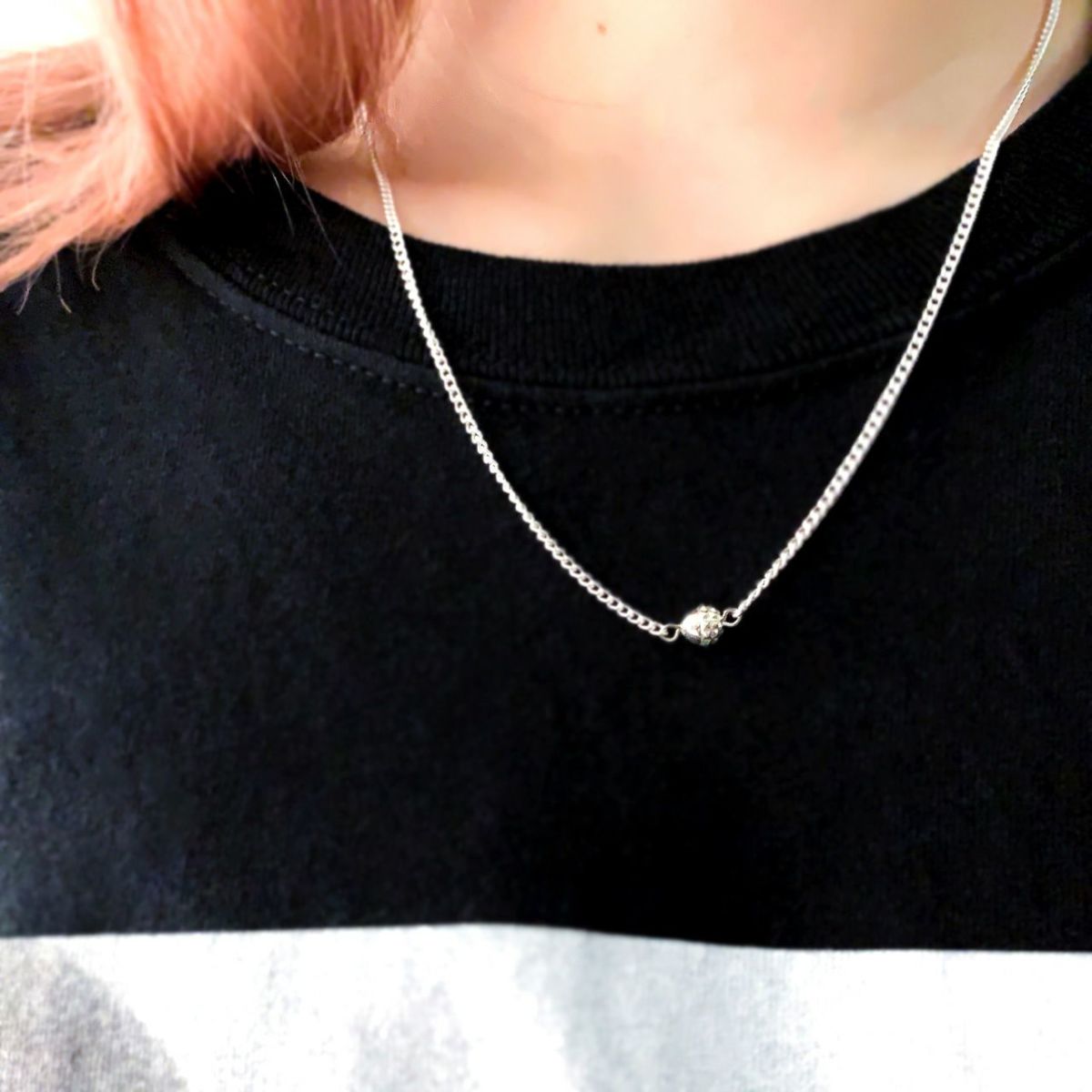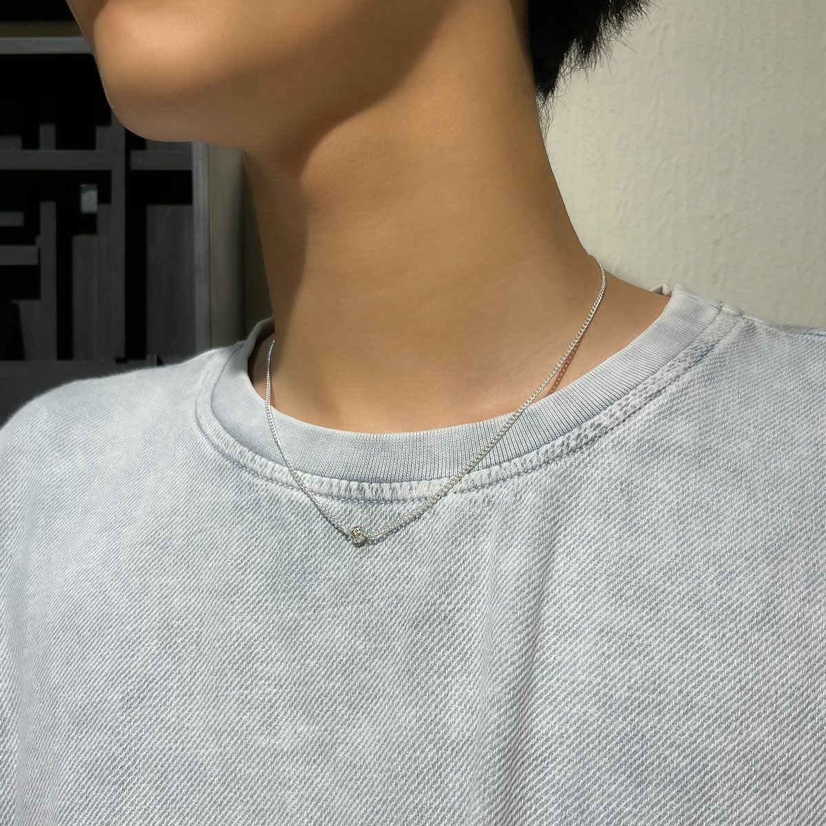 プレーンな半球体と小ぶりなスタッズで表現したオリジナルビーズを一粒と、喜平チェーンをミックスしたネックレスです。