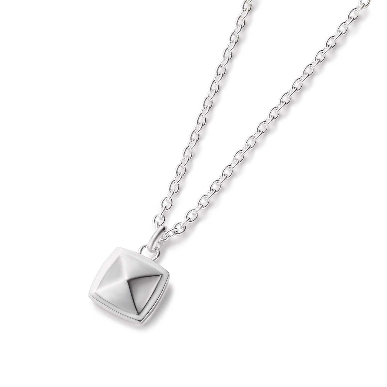 ピラミッド型スタッズのペンダントです。緩やかな曲線を加えたピラミッド型はハードな印象が和らぎ、コーディネートに取り入れやすいデザインに仕上げています。 カジュアルなコーディネートやシックなコーディネートにも、装いをより一層引き立てます。 アジャスターでチェーンの長さを7cm調整可能です。チェーンはペンダントトップから外れない仕様になっています。 オリジナルアクセサリーケース付き。 ▼バリエーション ・Stud Pendant - S 【CLASH】COLLECTION >商品一覧はこちら