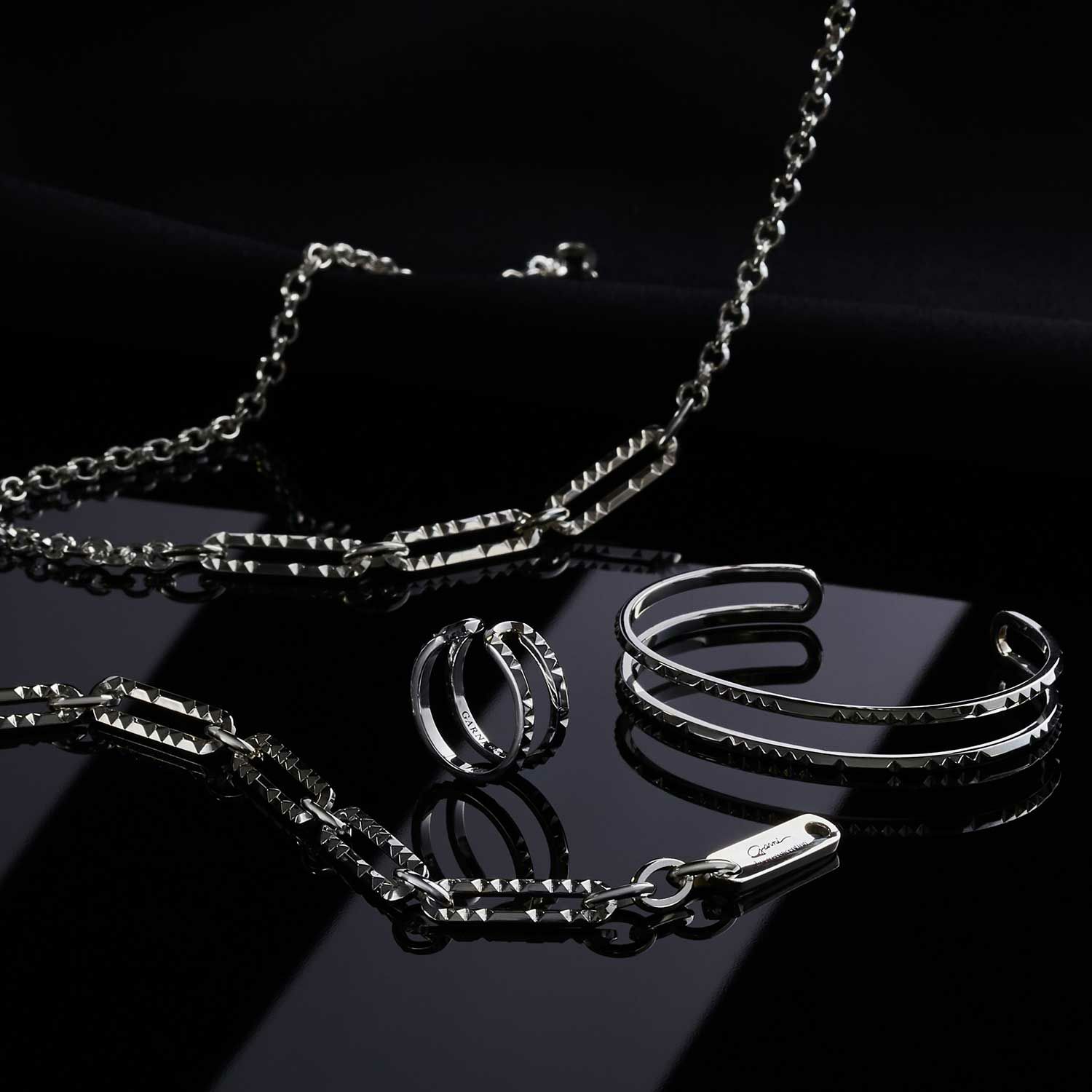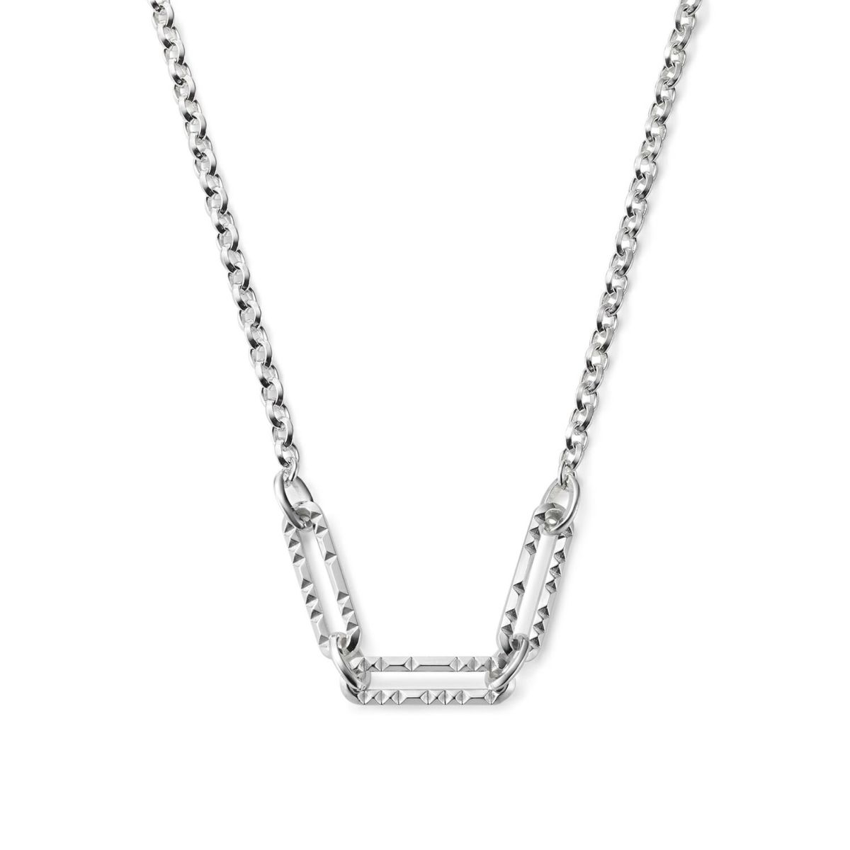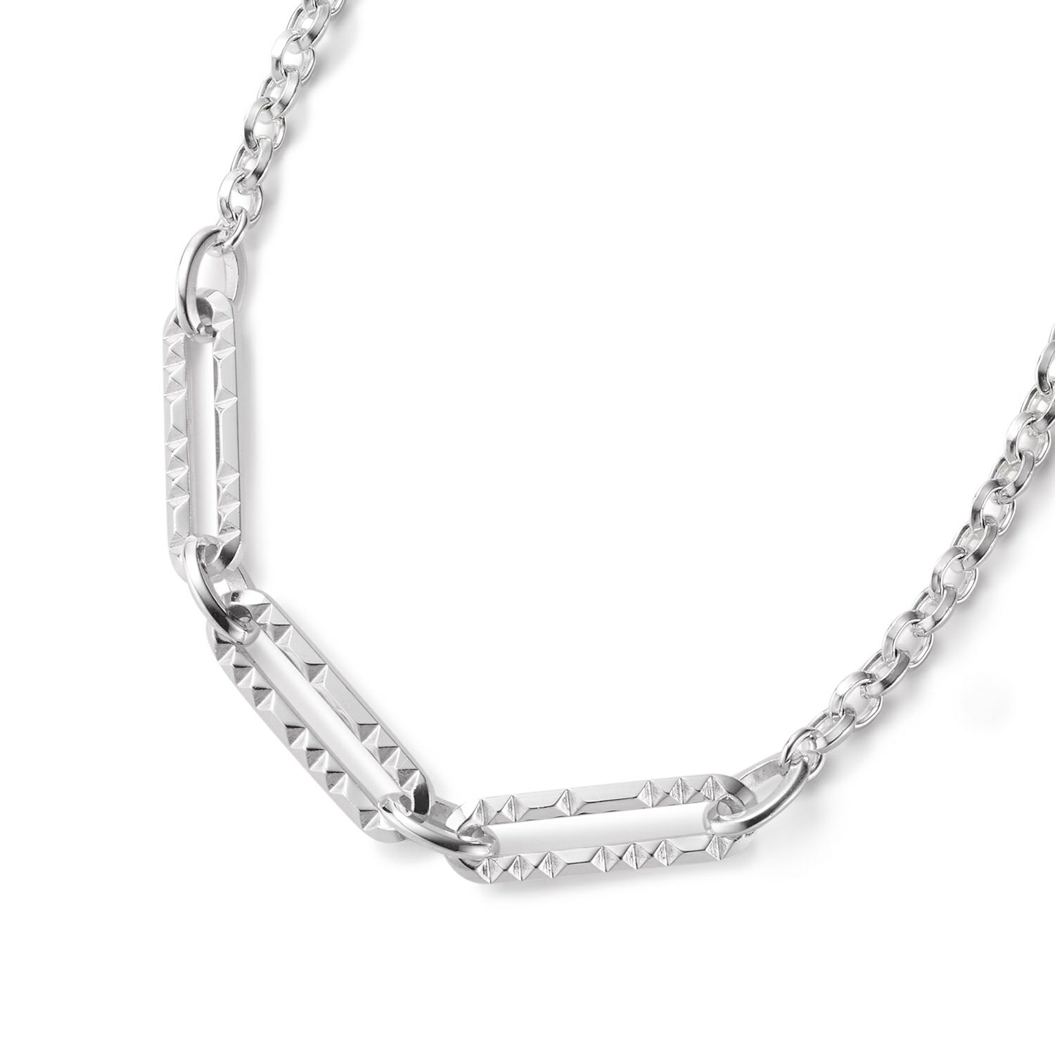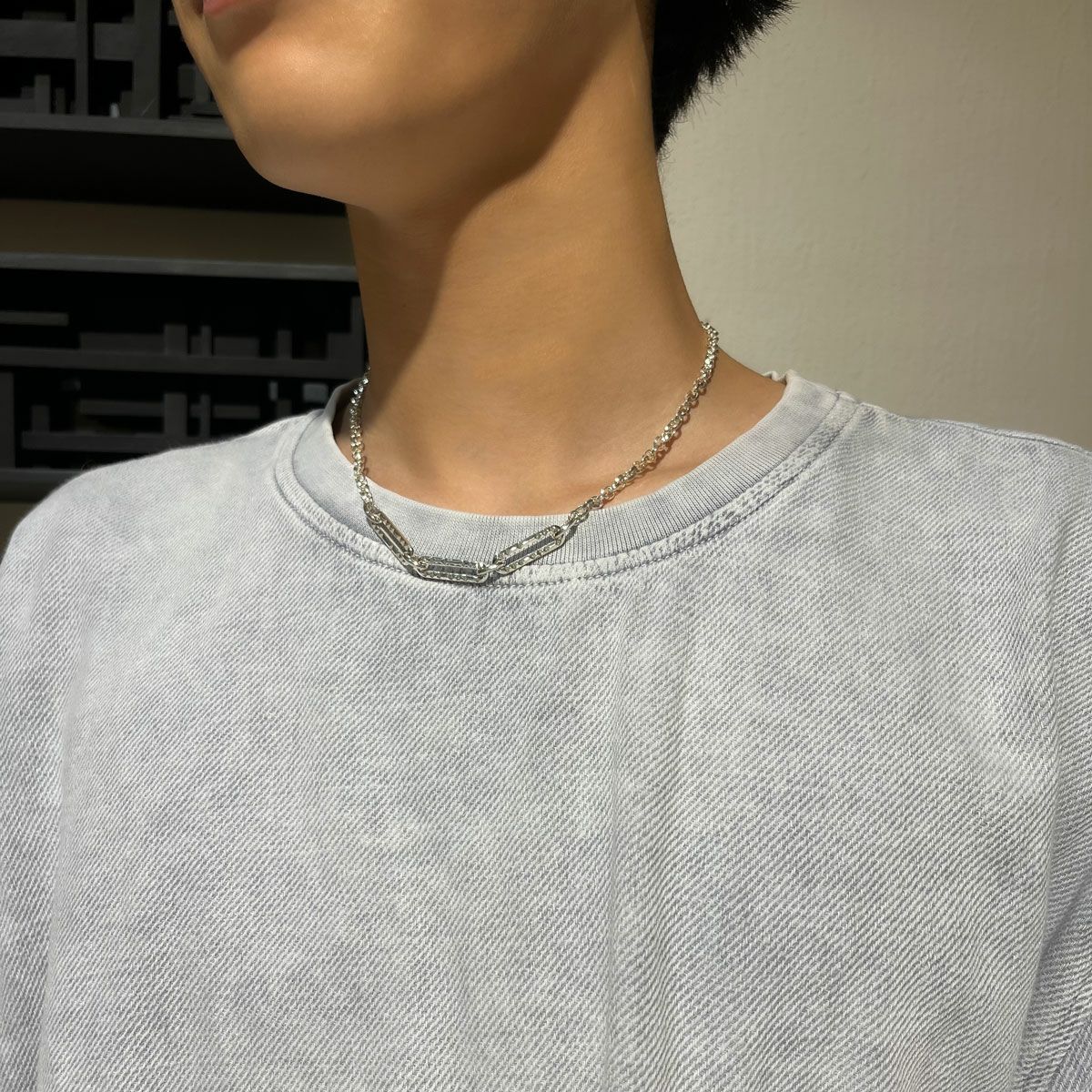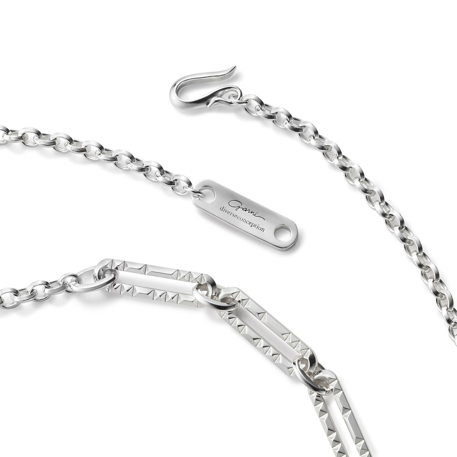長短サイズの異なる小ぶりなスタッズで表現したオリジナルチェーンとエッジの利いたチェーンをミックスしたネックレスです。 上品さとカジュアルさがマッチした仕上がりです。 オリジナルアクセサリーケース付き。 【CLASH】COLLECTION >商品一覧はこちら
