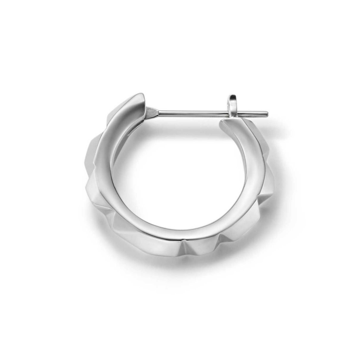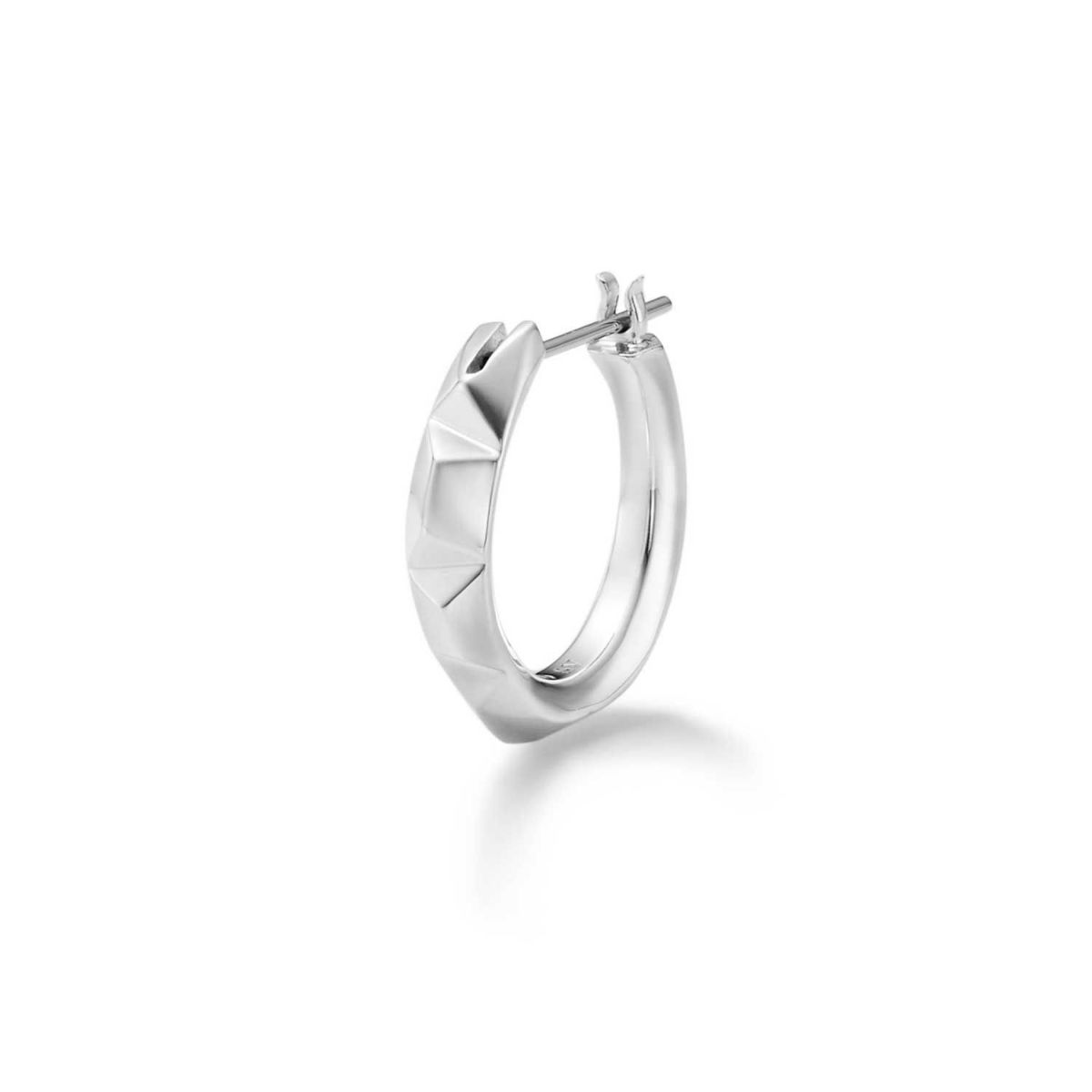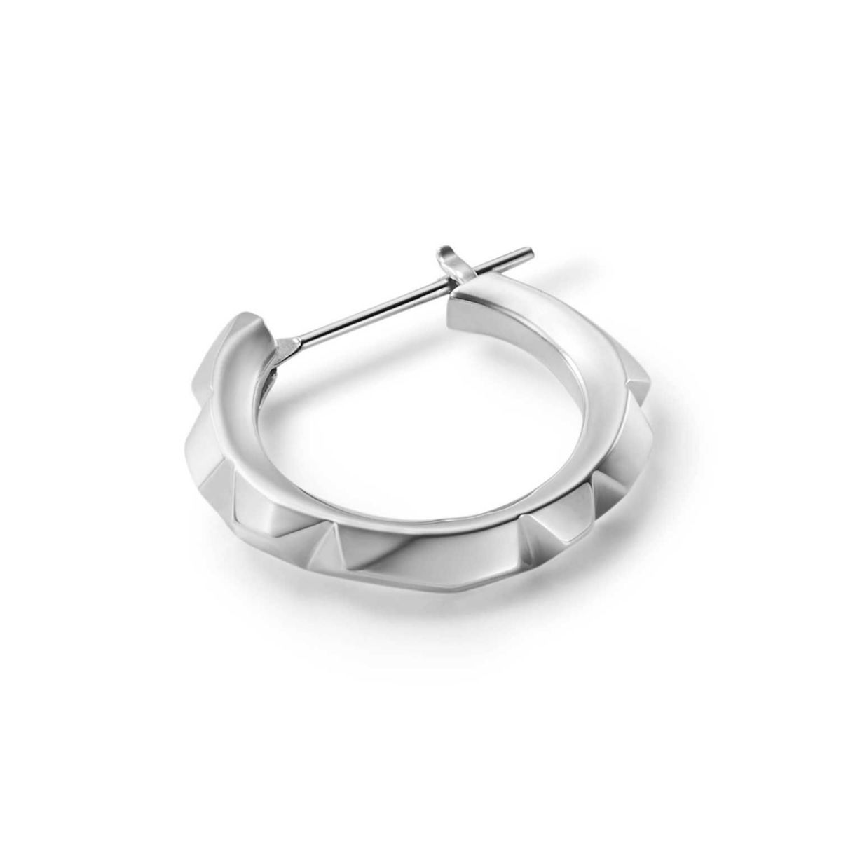 独創的なフォルムの"Clash"デザインを施した、ジェンダーレスに着用できるフープピアスのLサイズです。同デザインのイヤリングもご用意しています。 程よくエッジの効いたデザインは片耳着用はもちろん、両耳着用でもオススメです。 オリジナルアクセサリーケース付き。 同デザインで大きさが異なる LとSの2型展開です。