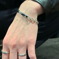 バー部分は側面を削りとり、表面にはテクスチャーを施したシルバーの特徴がいかされたブレスレットです。