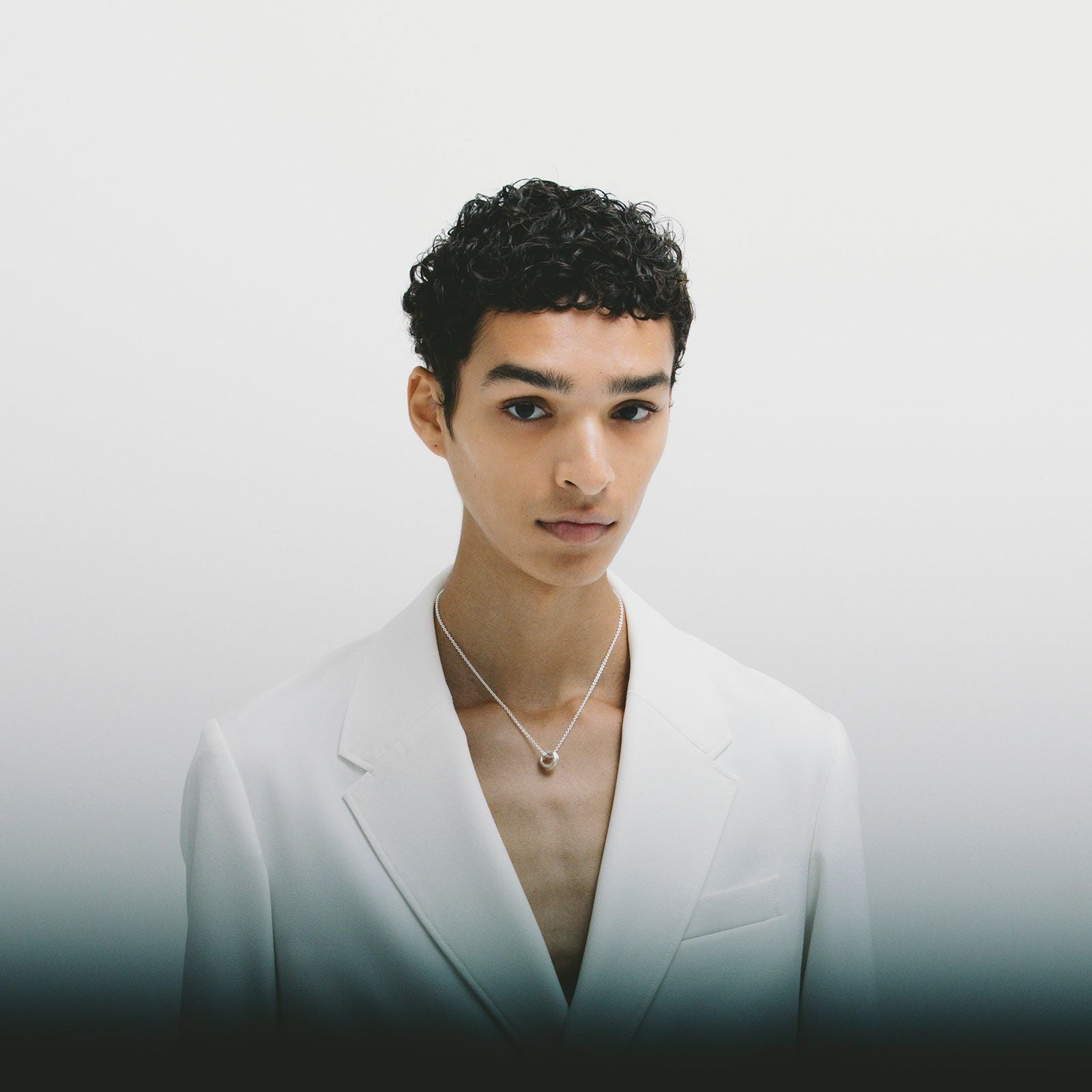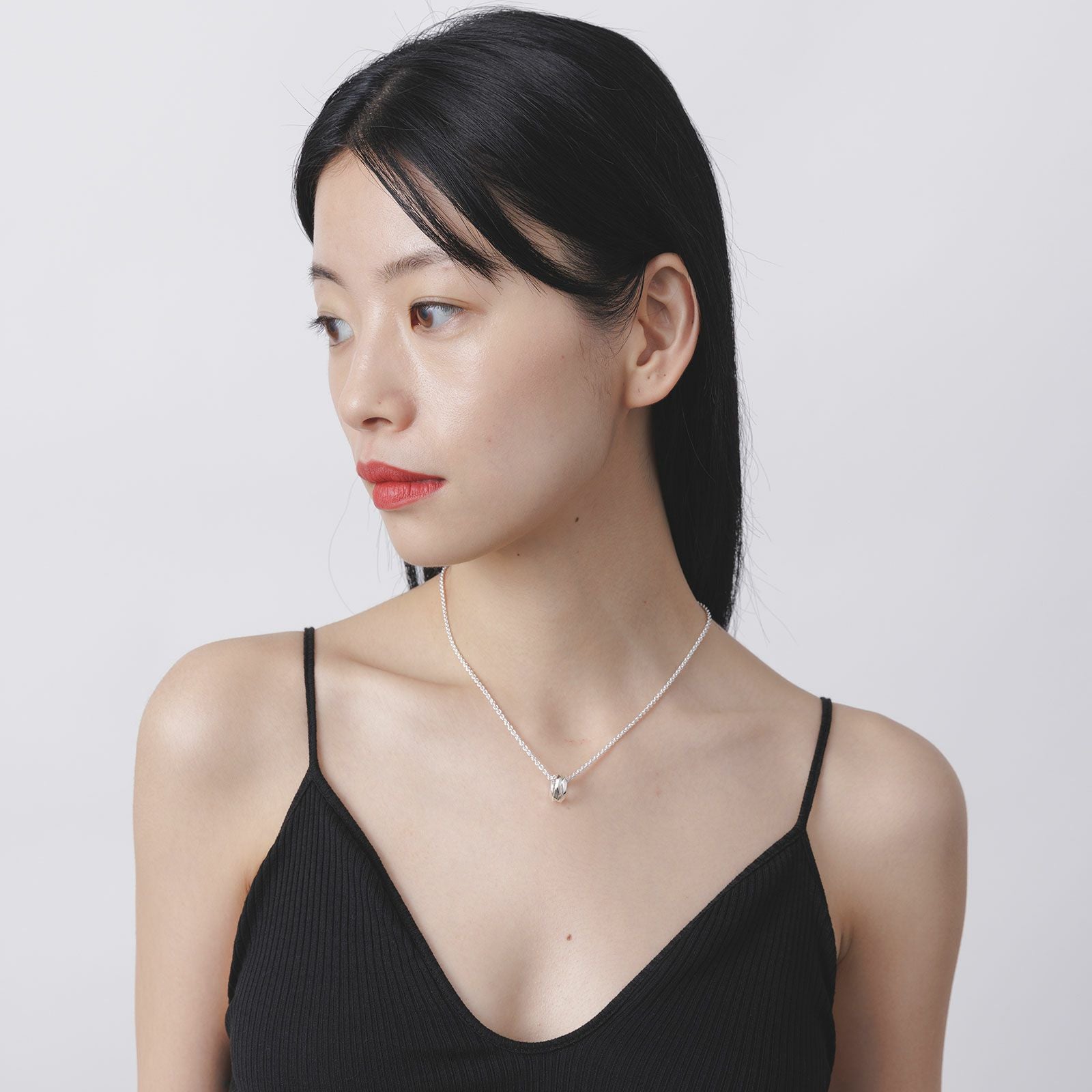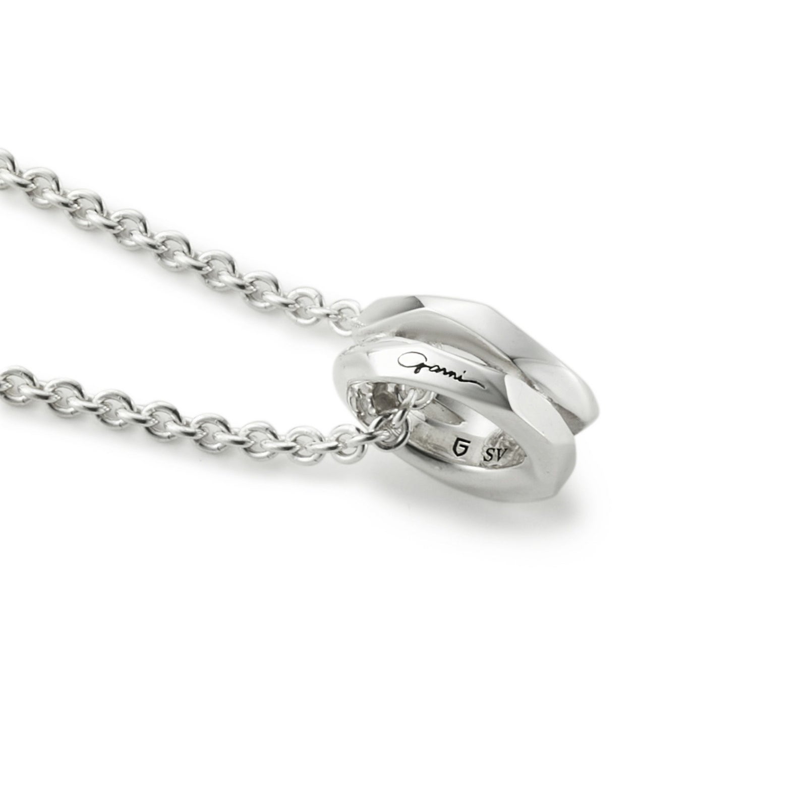 2つに重なったリングを作り、ペンダントトップにしています。