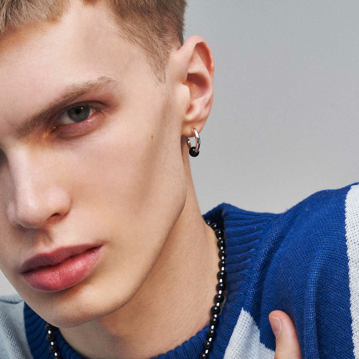 約6mm玉の天然石を用いてボディーピアス風にデザインされたフープピアスです。