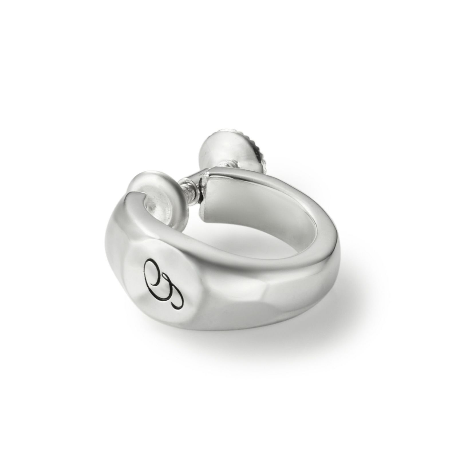 印台リングの形状を落とし込んだイヤリングです。同デザインのピアスもご用意しています。