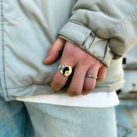 カジュアルながらもエレガントなムードが漂います。程よいボリュームのリングは手元にアクセントを加えます。