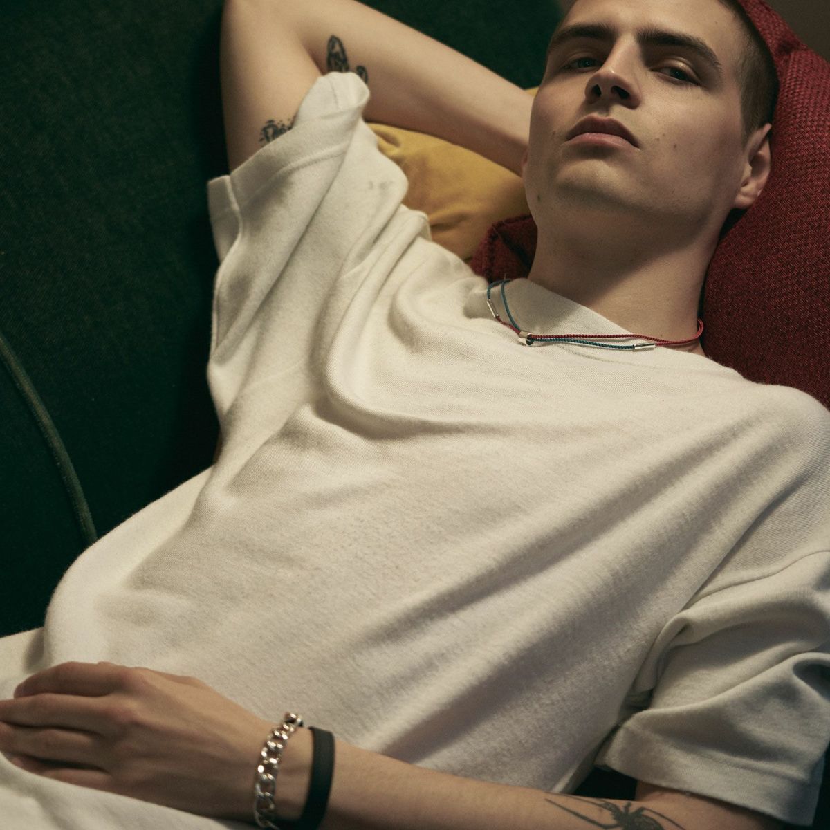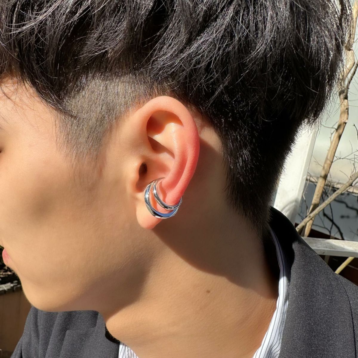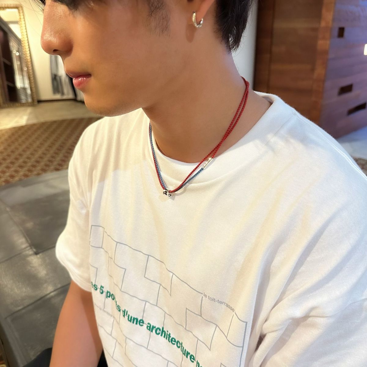 シルバーと様々な素材を組み合わせて表現したデザインは、幾何的な質感とカラーリングが特徴的です。