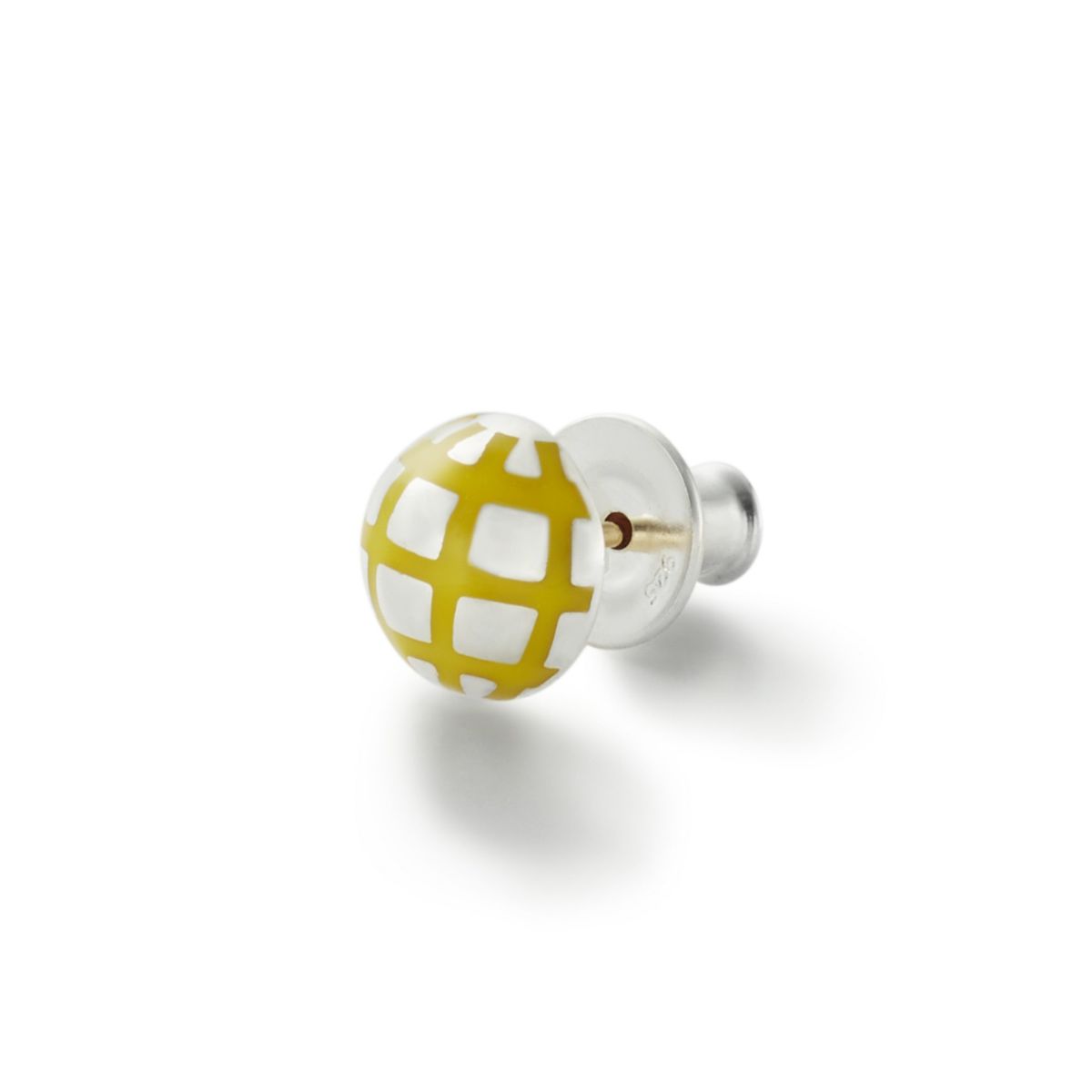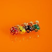 ドーム型にエポキシ樹脂でカラフルな色味の格子柄を施したデザインです。