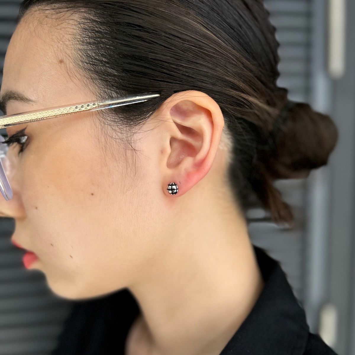 連続する窓の格子からインスピレーションを得てデザインしたグリッドシリーズのスタッドピアスです。