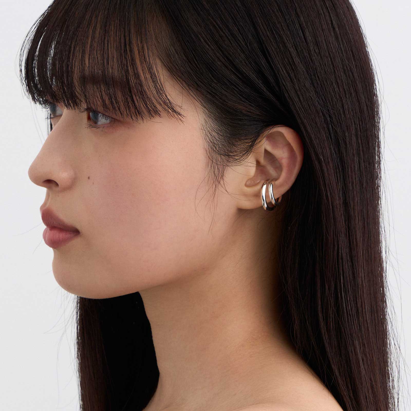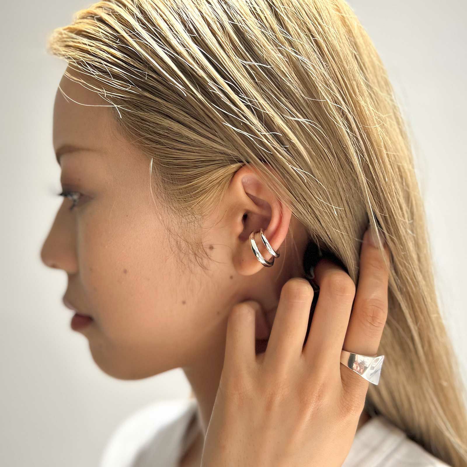 重ね着けをしているようなデザインに落とし込んだフープイヤーカフです。 オリジナルアクセサリーケース付き。