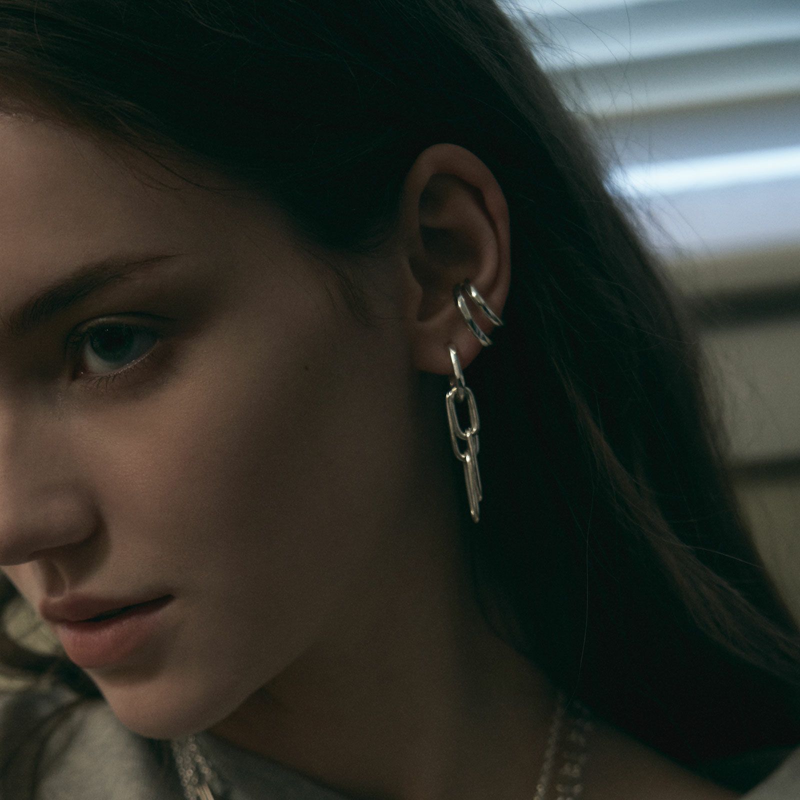 ■スタイル 耳に引っ掛けるタイプなので、ピアスホールが空いてない方でも着用できます。存在感があるフォルムながら素材を生かしたシンプルなデザインは、スタイルを選ばずに着けていただけます。 《注意事項》 ・ご自身でサイズ調節を行うと亀裂や折れてしまう可能性がありますのでご注意ください。 【ENSEMBLE】COLLECTION >商品一覧はこちら