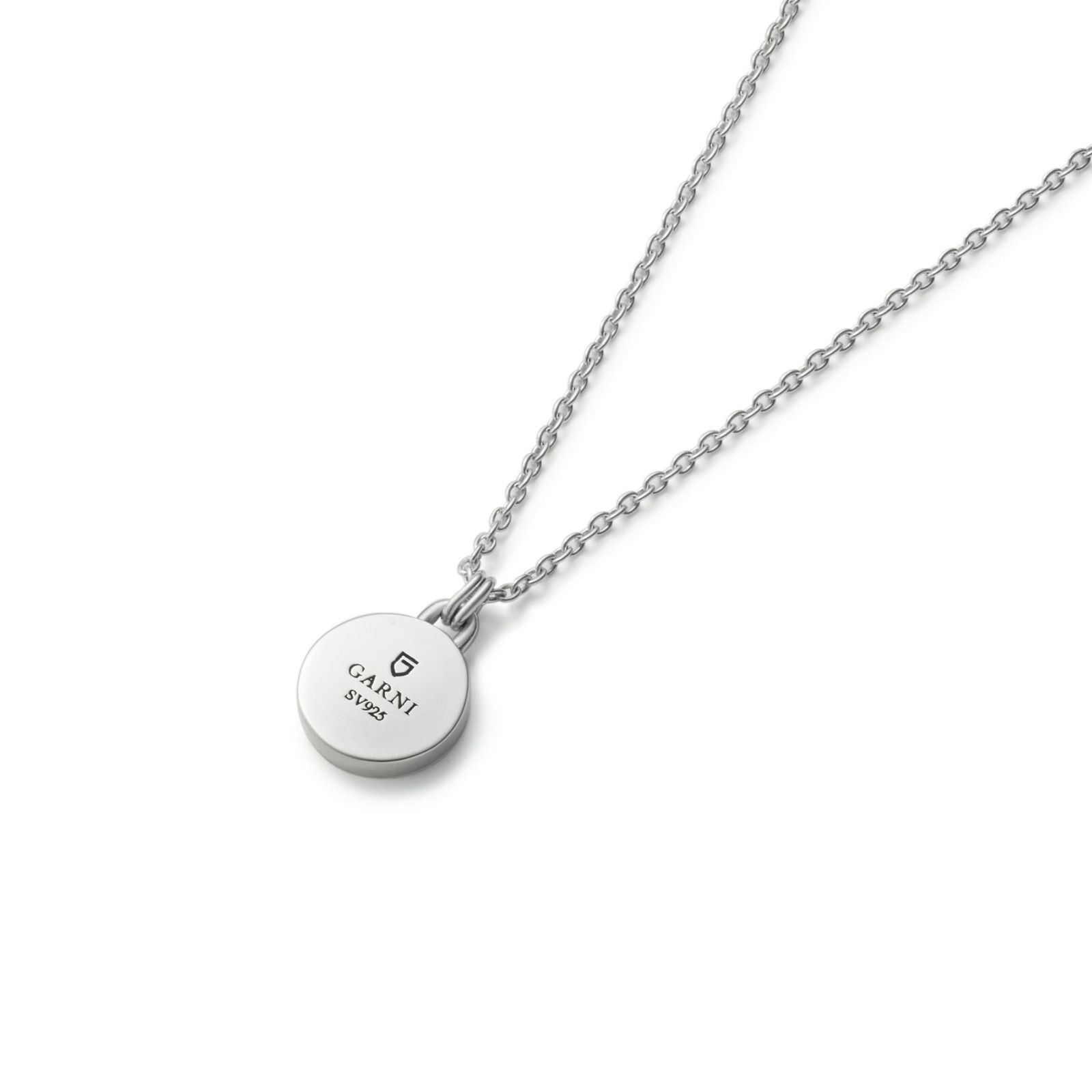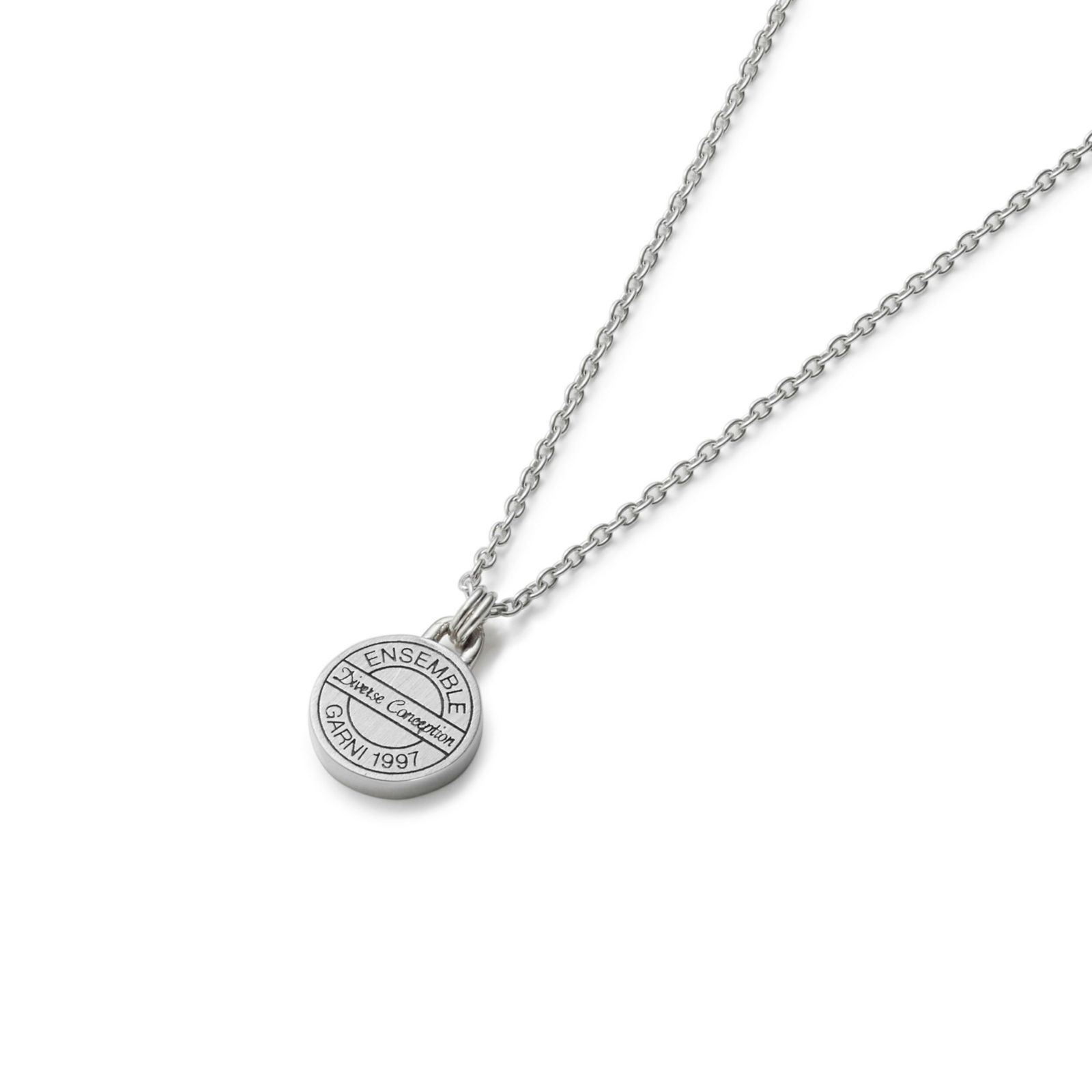 コイン調にデザインしたモチーフのペンダントです。 モチーフ表面はマット加工を施し、デスクランプにあしらわれている刻印をデザインソースにブランドコンセプトを刻印しました。 鏡面仕上げとマット加工のコントラストが特徴です。 アジャスターでチェーンの長さを7cm調整可能です。チェーンはペンダントトップから外れない仕様になっています。 オリジナルアクセサリーケース付き。