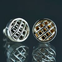 三次元的に曲げたワイヤーを網の目に表現したピアスです。