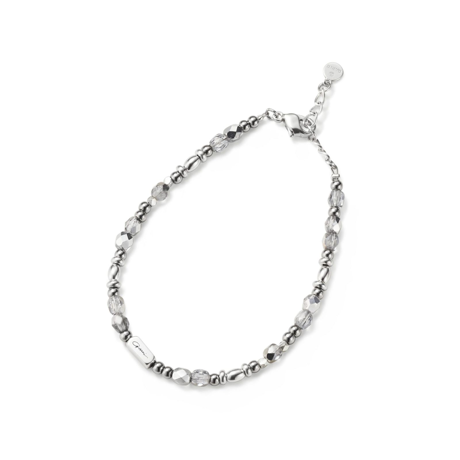 ■デザイン ステンレスのラウンドビーズと シルバー925製ビーズを組み合わせて、同じシルバー色でもコントラストをつけ、アクセントにガラスビーズを加えています。