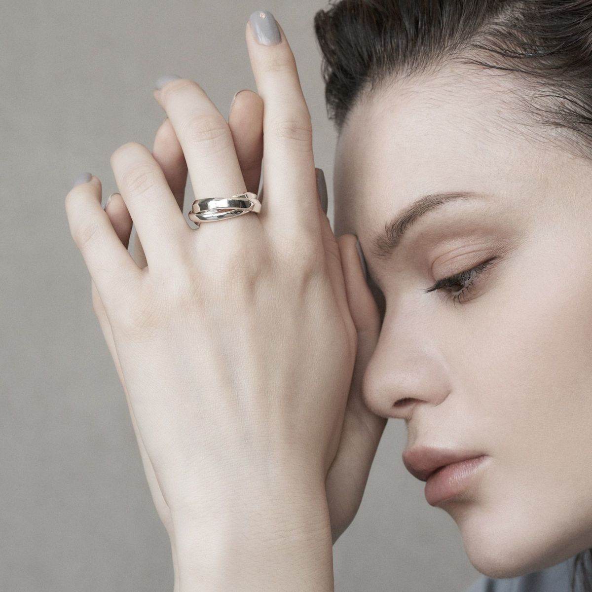 ■デザイン ブランド独自のカッティングを施したリングとプレーンな形状で作られたリングは太さにも変化をつけて表情にアクセントを加えています。