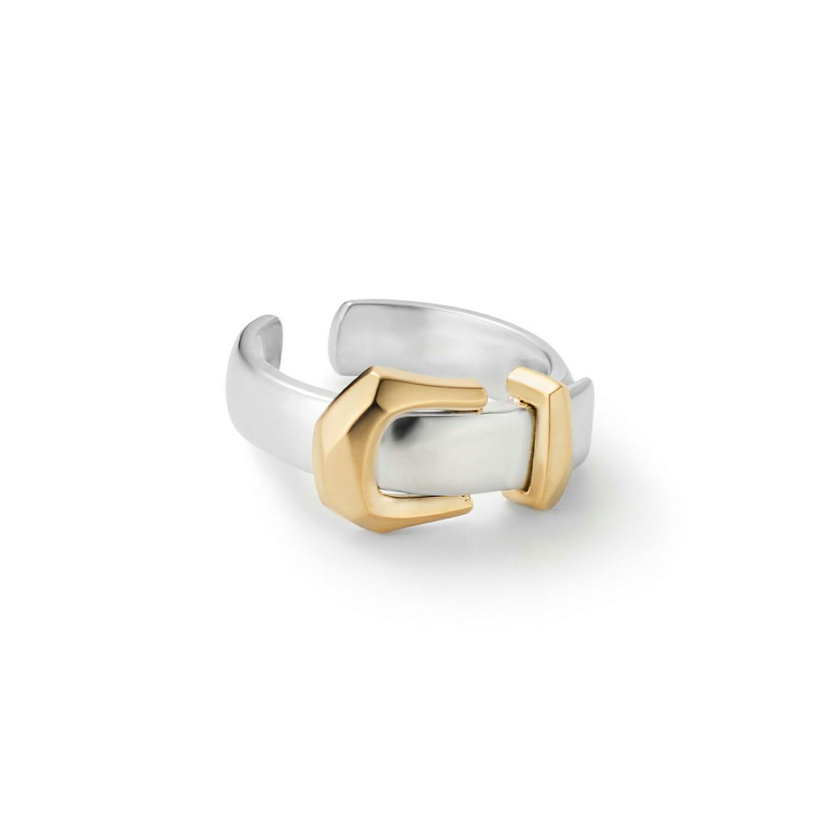 バックルとループパーツにはK18 イエローゴールドを使用。シルバーとゴールドのコンビネーションが高級感を引き立てます。