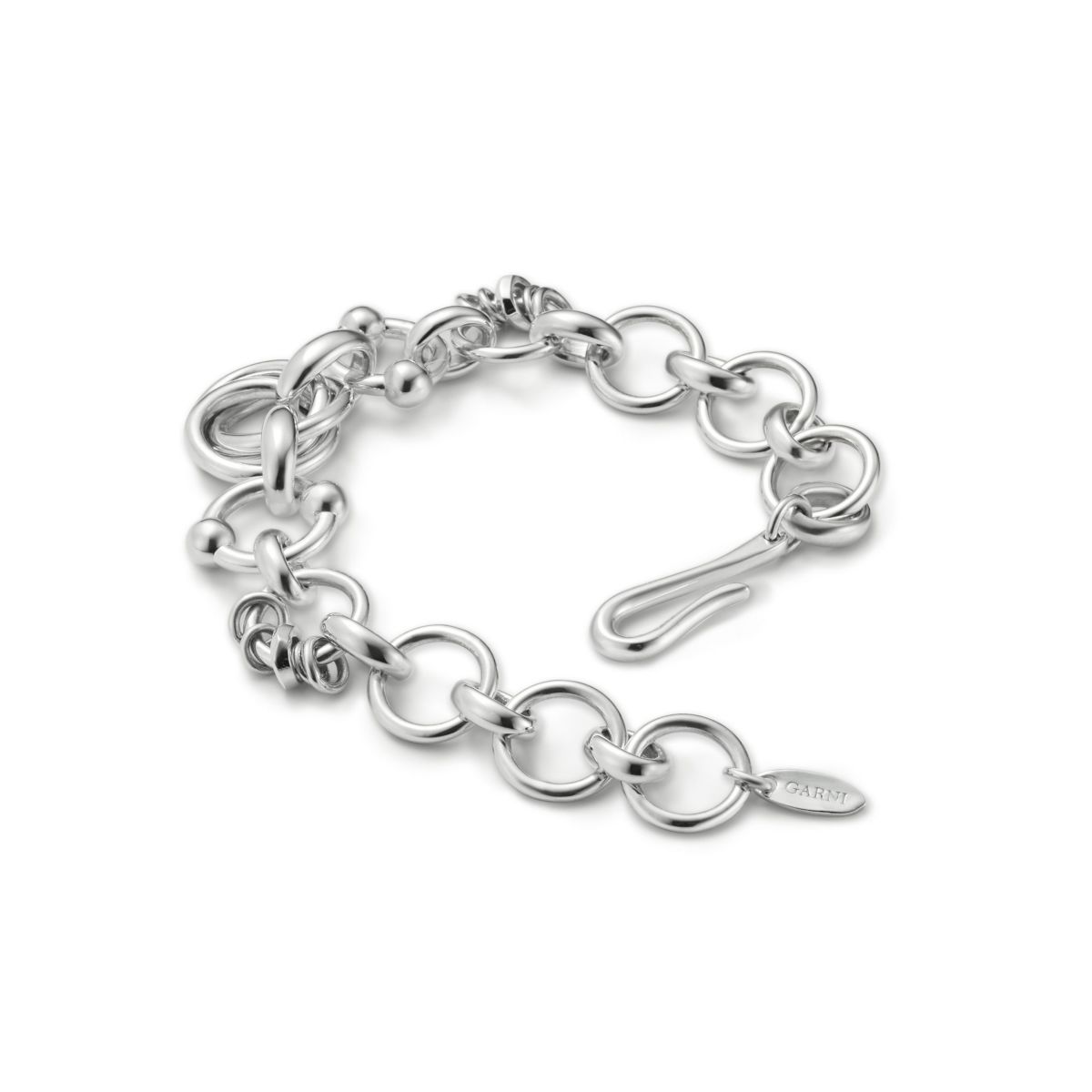 装飾を施したパーツなどを連ねたオリジナルチェーンが印象的なブレスレットです。