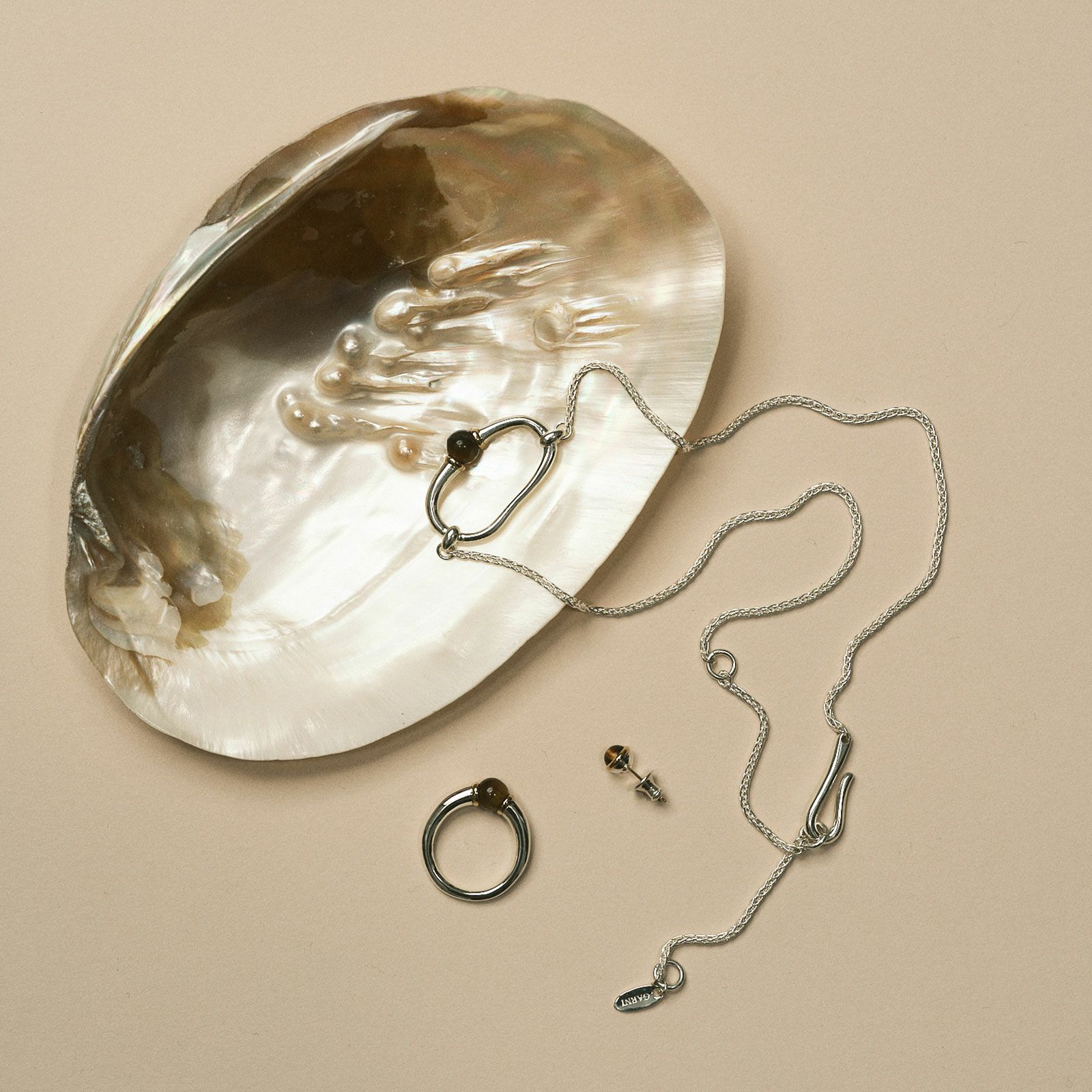 有機的でイレギュラーなフォルムに天然石を組み合わせたリングです。