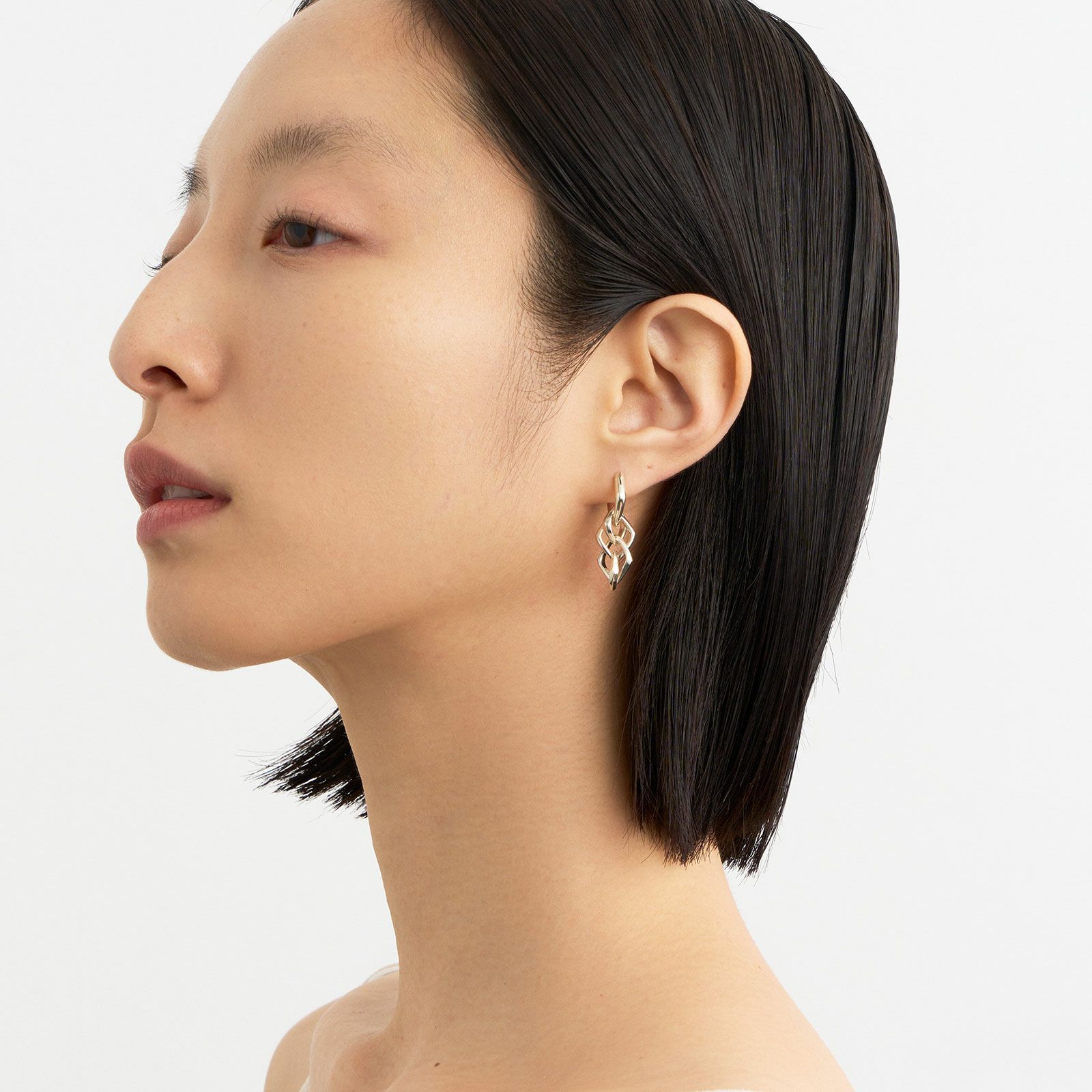 有機的なラインが絡み合うように編まれたツイストチェーンデザインが印象的なピアスです。