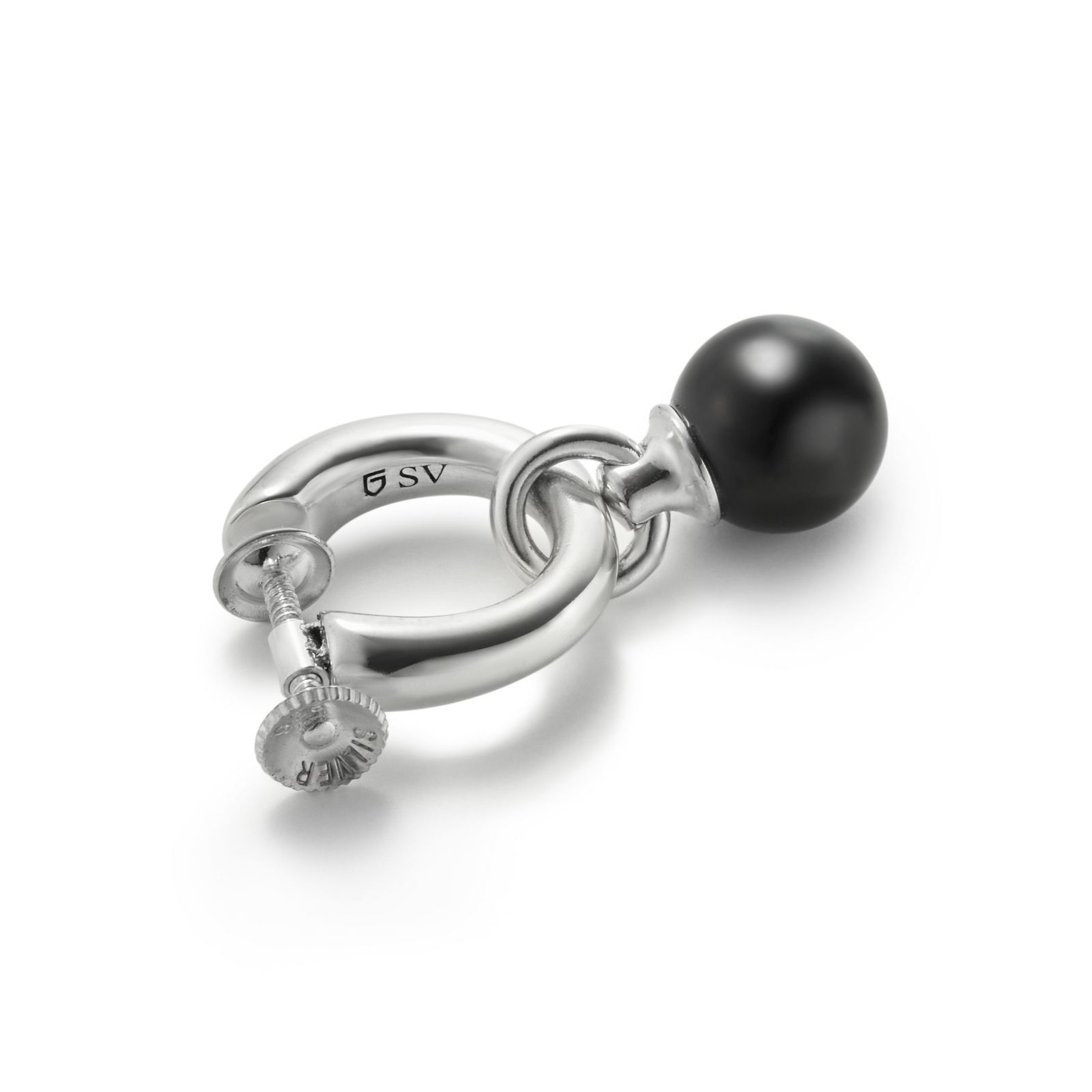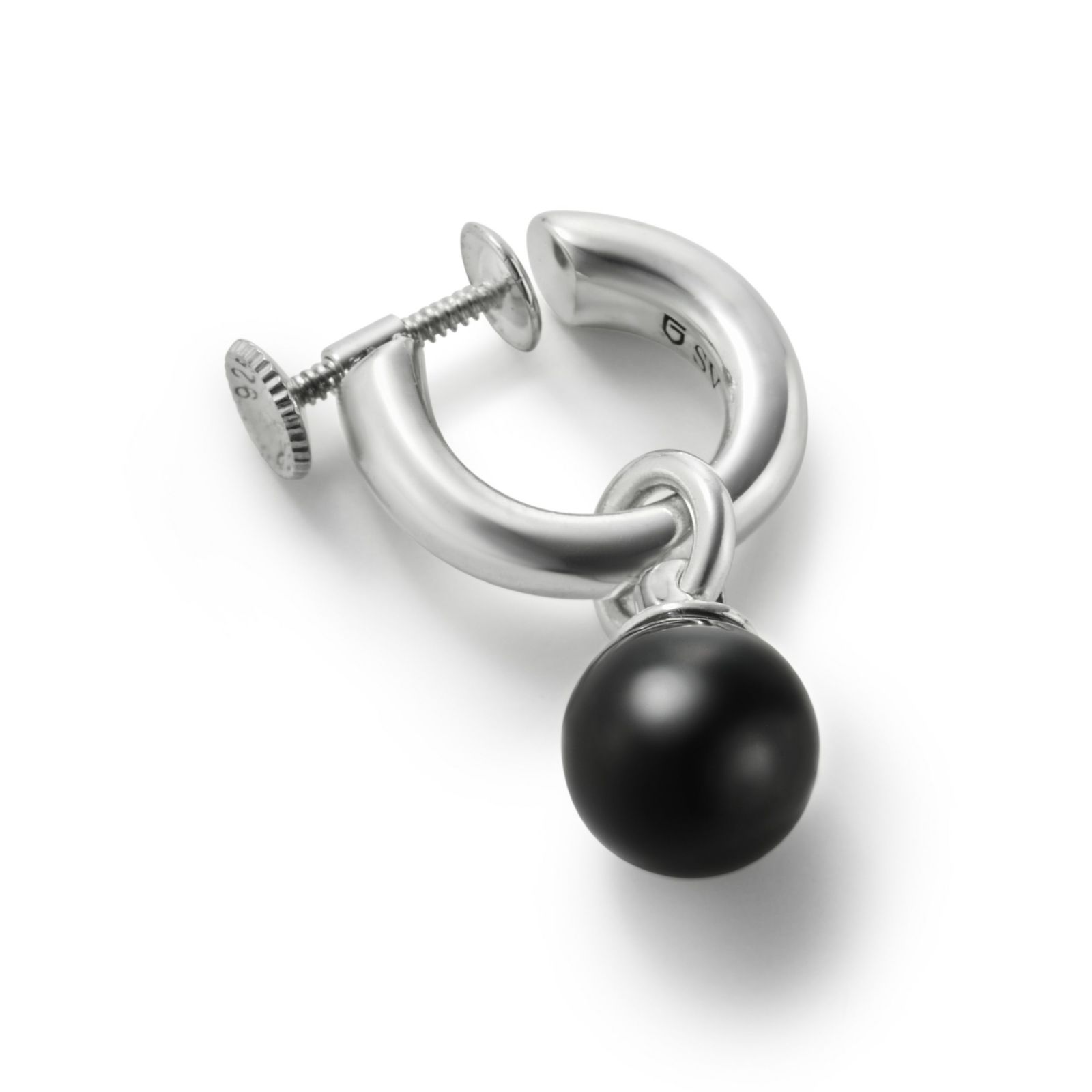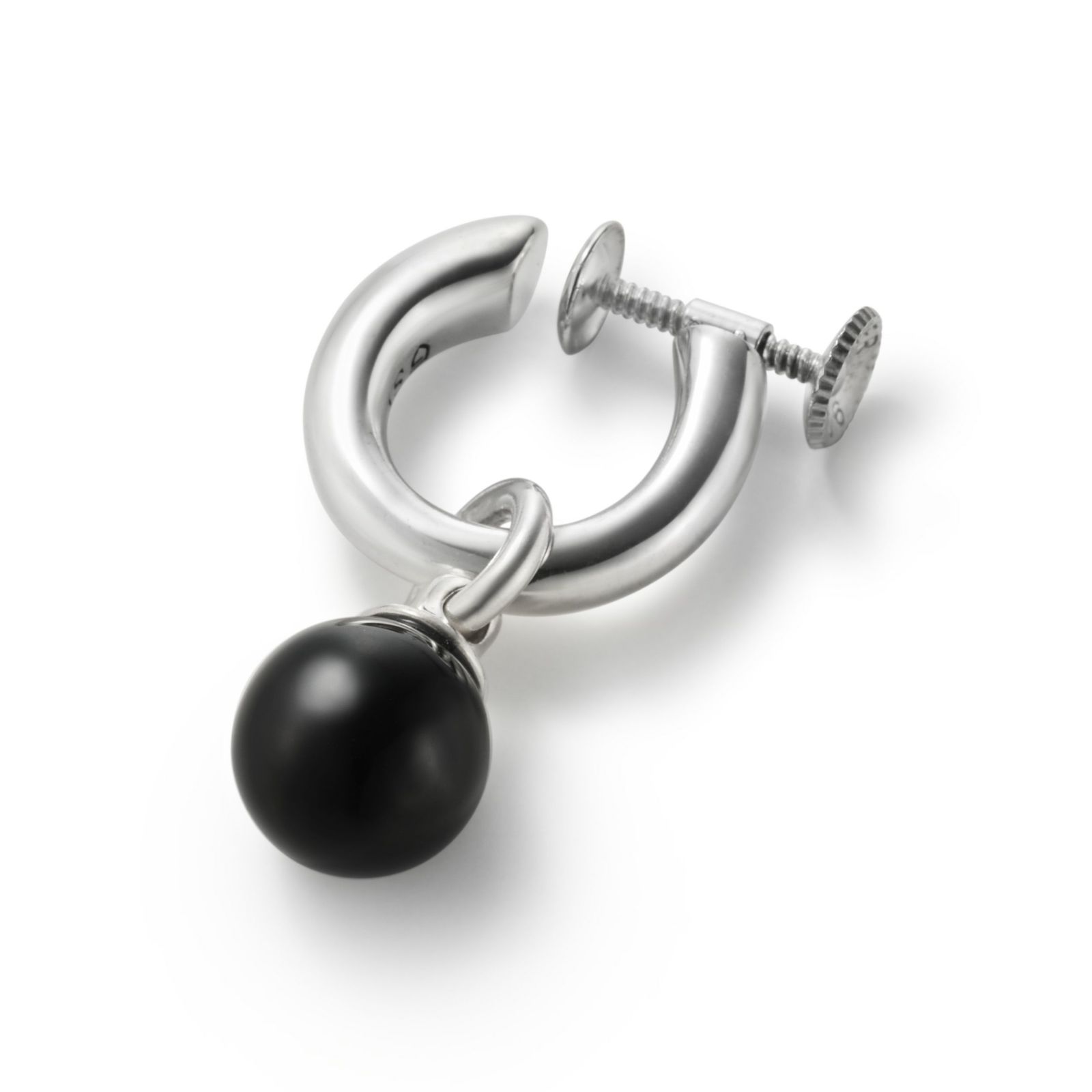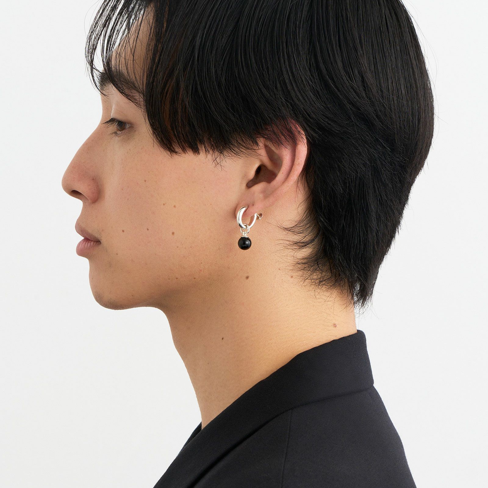 上品な輝きを放つシルバーフープに、天然石のブラックオニキスをあしらったミニマルなデザインのイヤリングです。