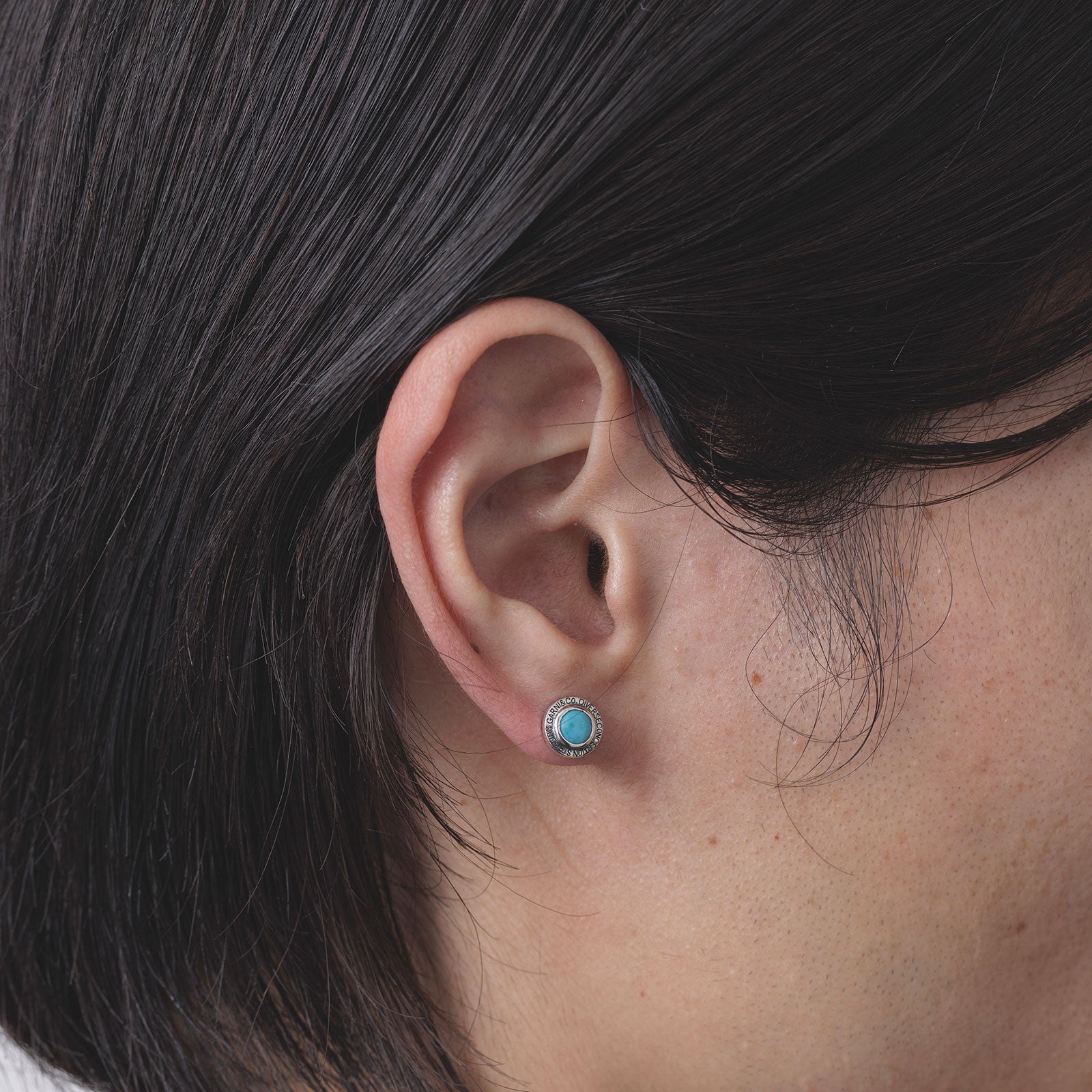 丸型のフレームに天然石をセットした「ラウンドストーン」のピアスです。
