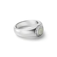 丸型のフレームに天然石をセットした「ラウンドストーン」のリングです。