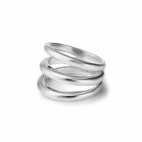 表面にさりげなくテクスチャーを施した「セイマ」のリングです。No.3はプレーンなリングを3連に重ね着けしているように見えるデザインです。