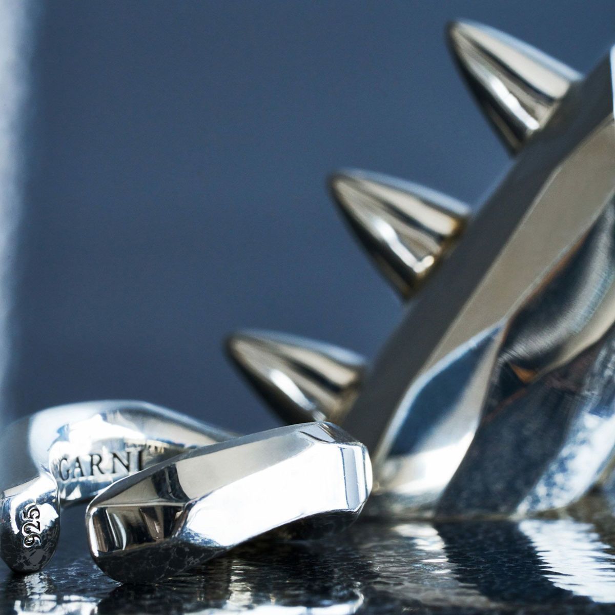 カフ全体にクロッケリーのテクニックで多面取りをした GARNI らしいテクスチャー感も魅力です。
