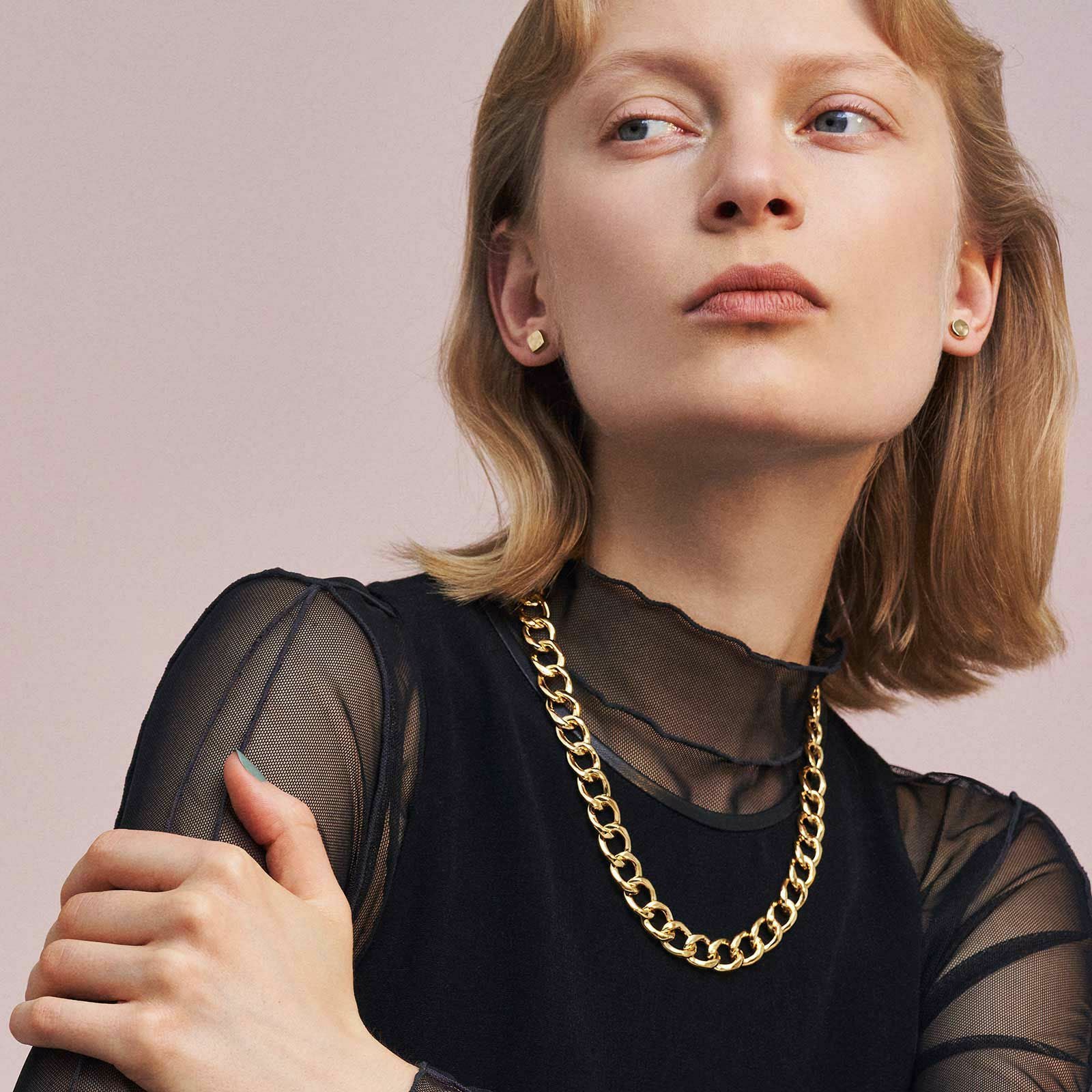 表面にさりげなくテクスチャーを施した「セイマ」のネックレスです。全体的に厚みを抑えていますが、存在感のある喜平チェーンです。