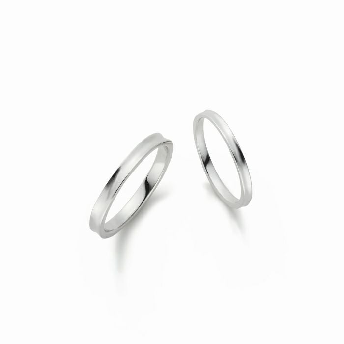 中央をくぼませた指あたりの良いフォルムをストレートデザインで表現したマリッジリング。素材の質感と光沢感が存分に感じられるリングです。