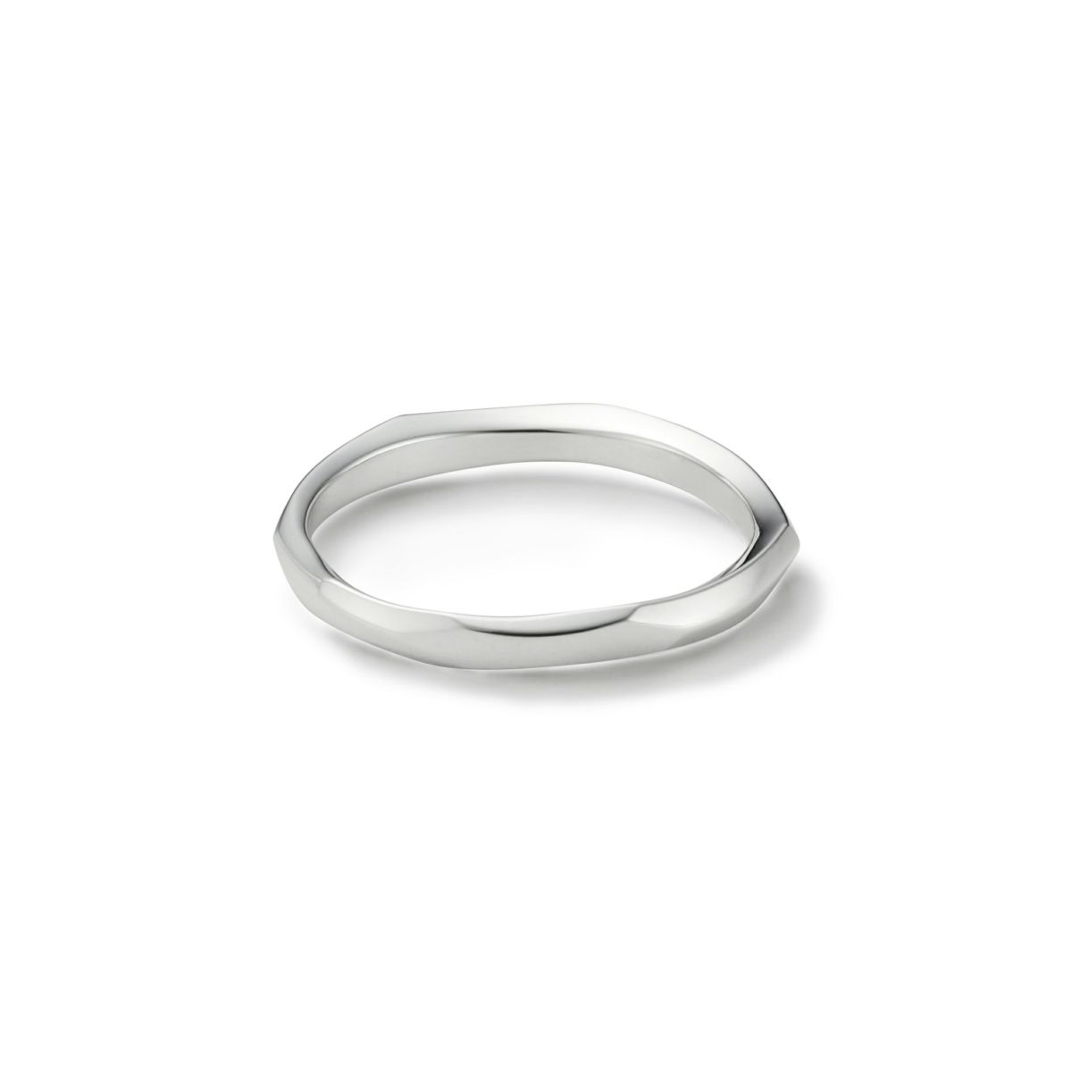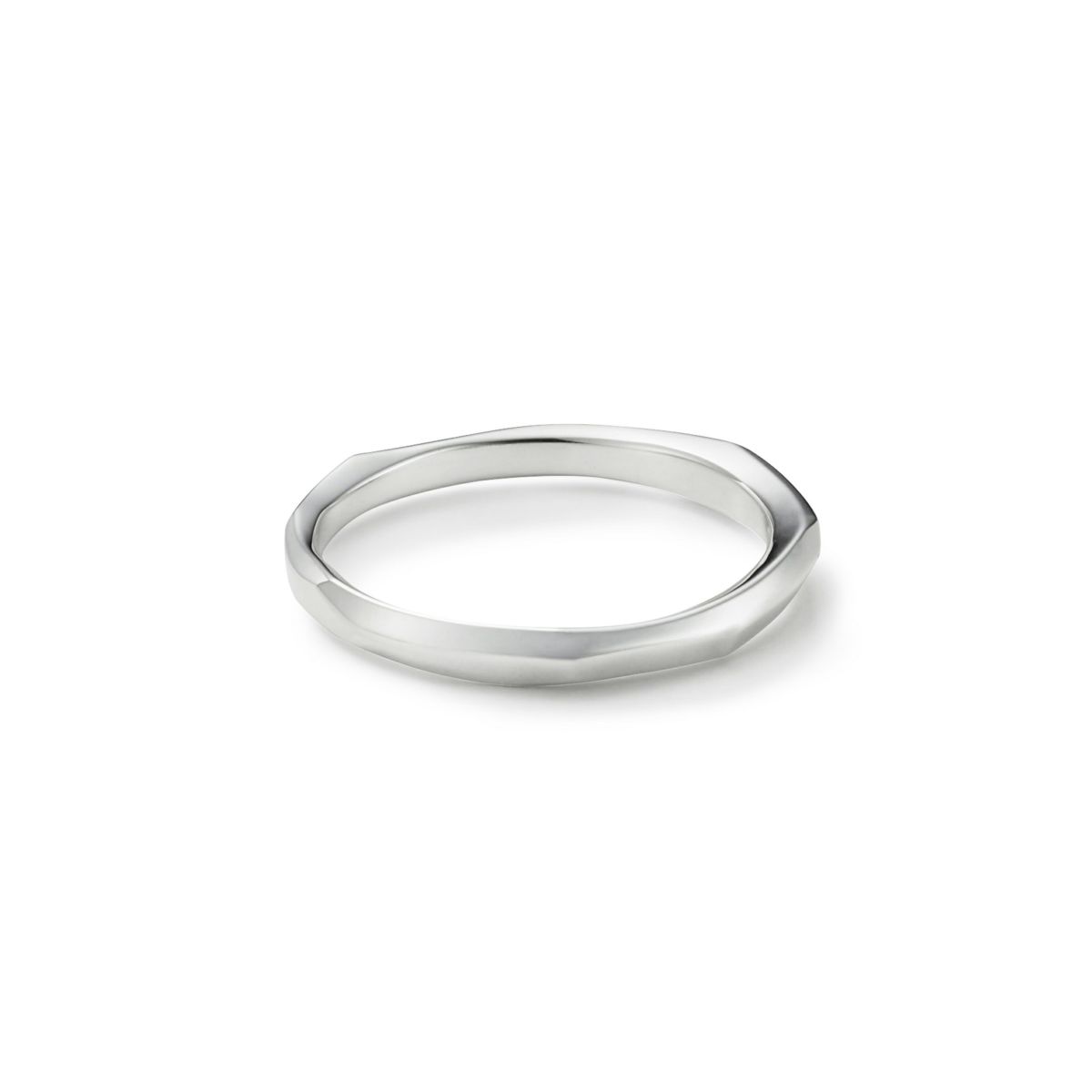 どの角度から見てもエッジが見事に調和したマリッジリングです。