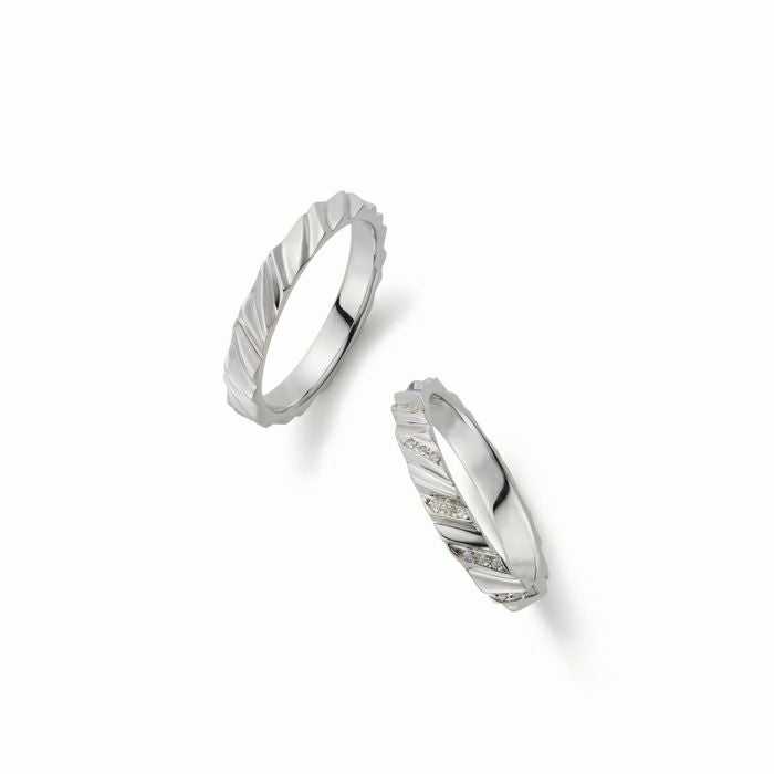 始めの一歩という意味が込められたマリッジリング。他にはないハイセンスなデザインも魅力的。ダイヤモンドをあしらい、より一層華麗なデザインです。