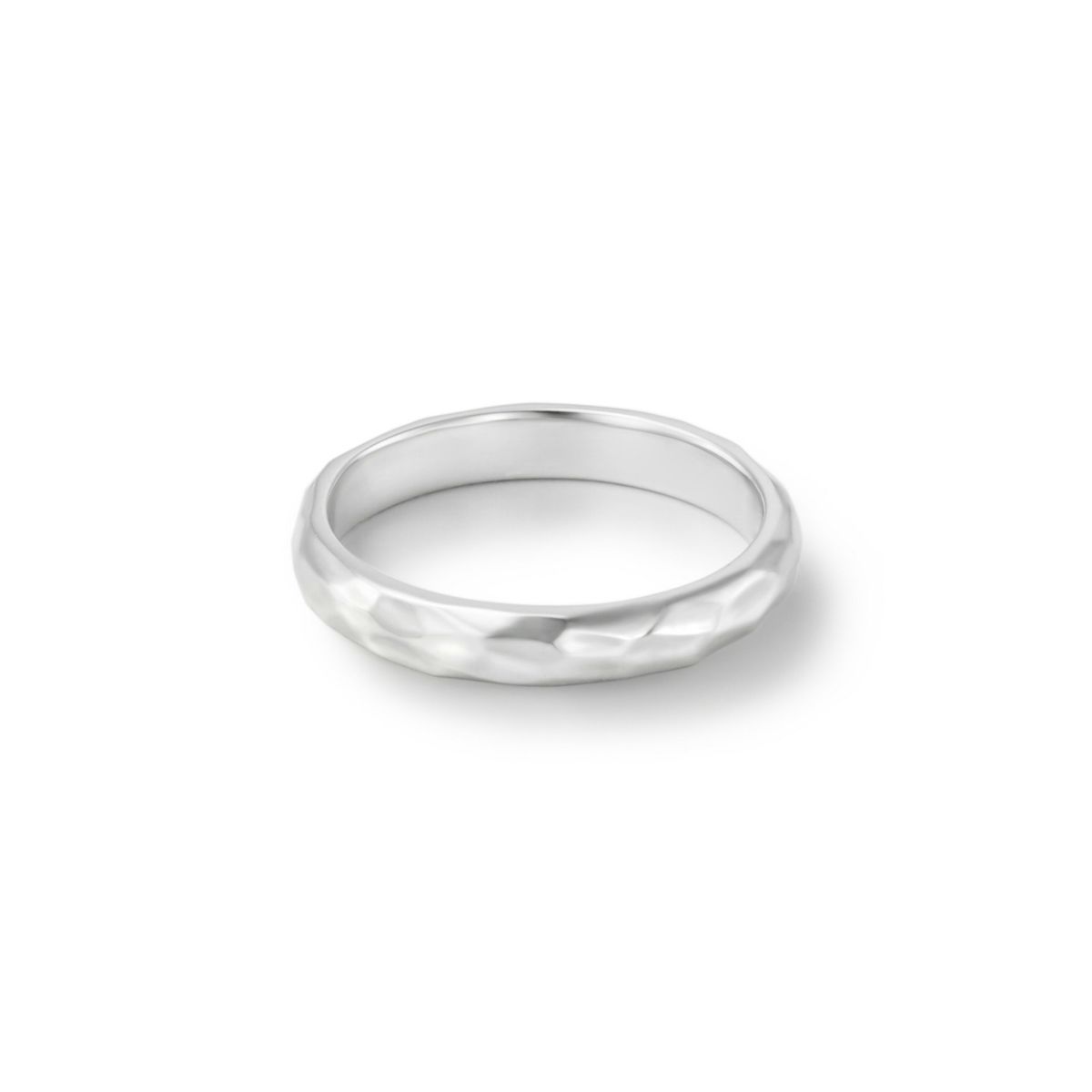 全面にテクスチャーを施すことで繊細な色のトーンや、触れたとき表面の強弱を感じさせるマリッジリングです。