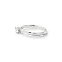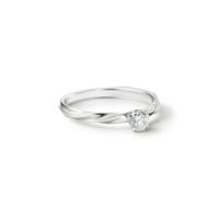 シンプルな甲丸リングに立体的なモチーフツイストをプラスする事で華やかな雰囲気を表現しています。その上にセットされたセンターダイヤが輝きを放ちます。