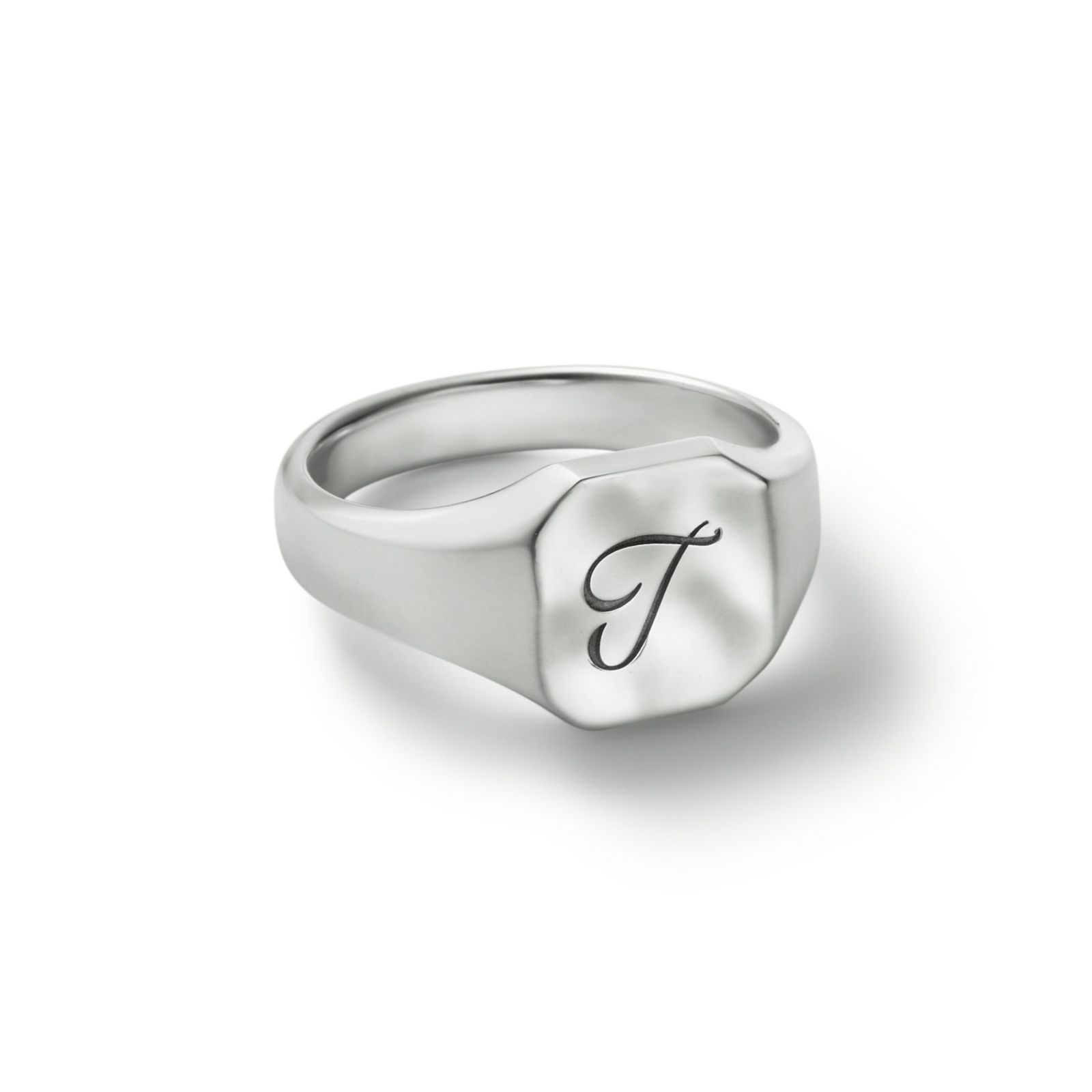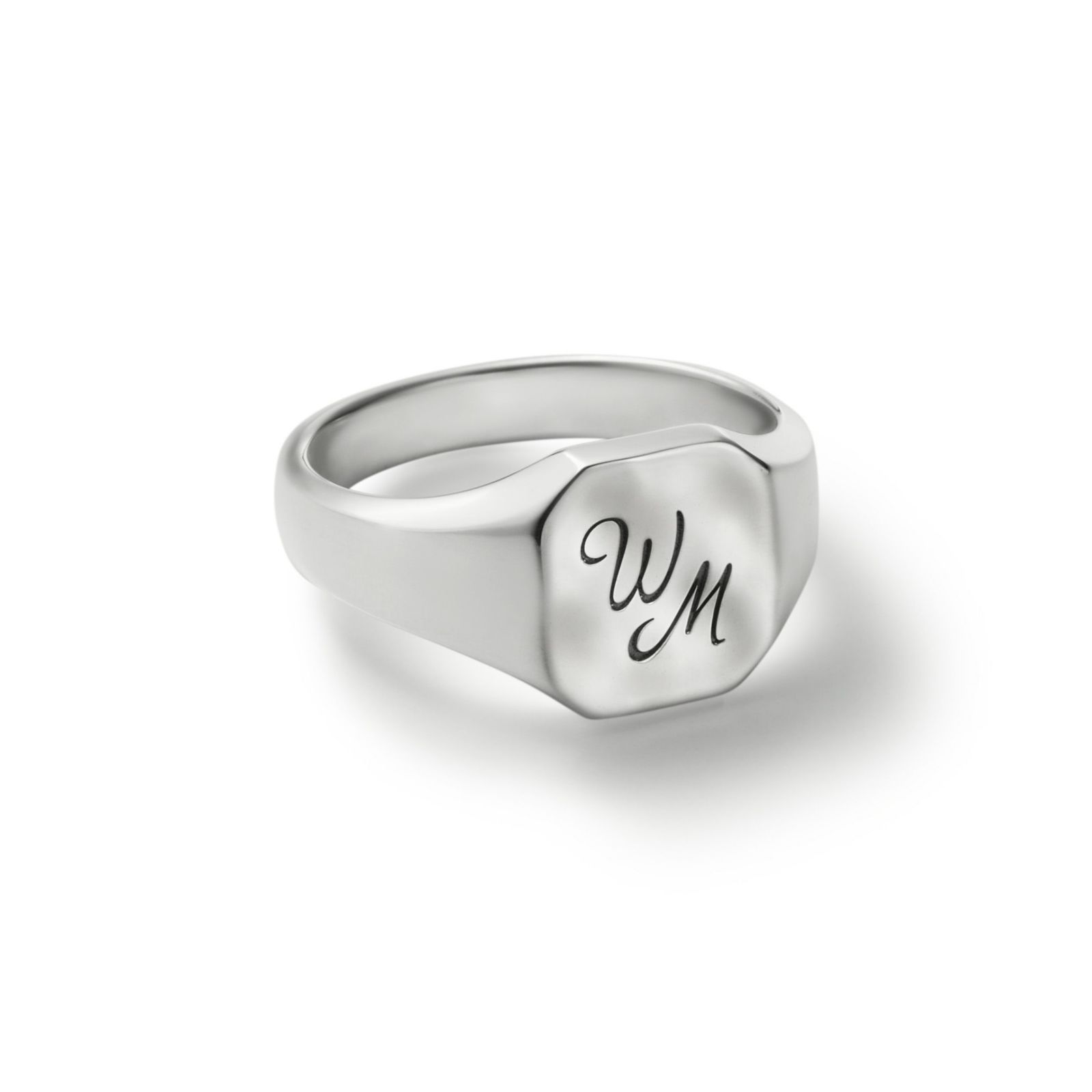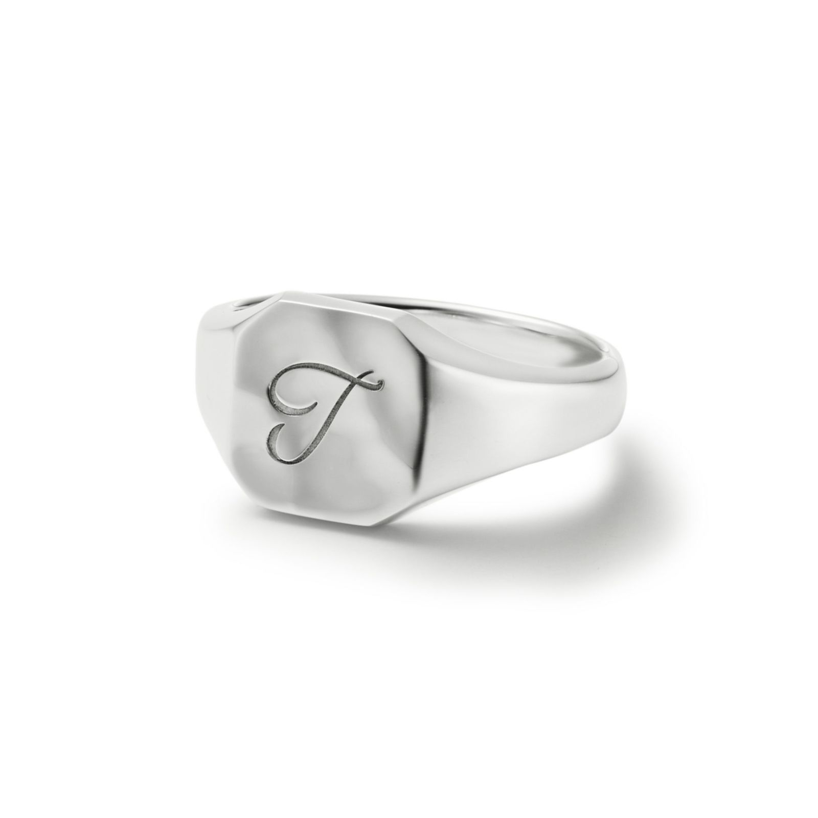 新たな定番アイテムとしてジェンダーレスに提案するシグネットシリーズ。こちらは表面にさりげなくテクスチャーを施したシンプルなオクタゴン型のリングです。